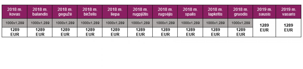 Pavyzdžiui, teisę į motinystės išmoką įgysite 2019 m. balandį. Jūsų atlyginimas „ant popieriaus“ šiemet buvo 1 000 eurų. Tuomet draudžiamosios pajamos, pagal kurias bus apskaičiuojama motinystės išmoka atrodys taip: lentelę nr. 2