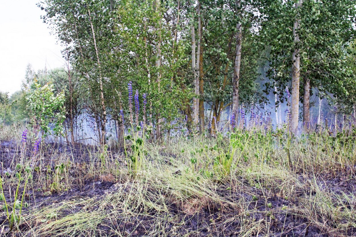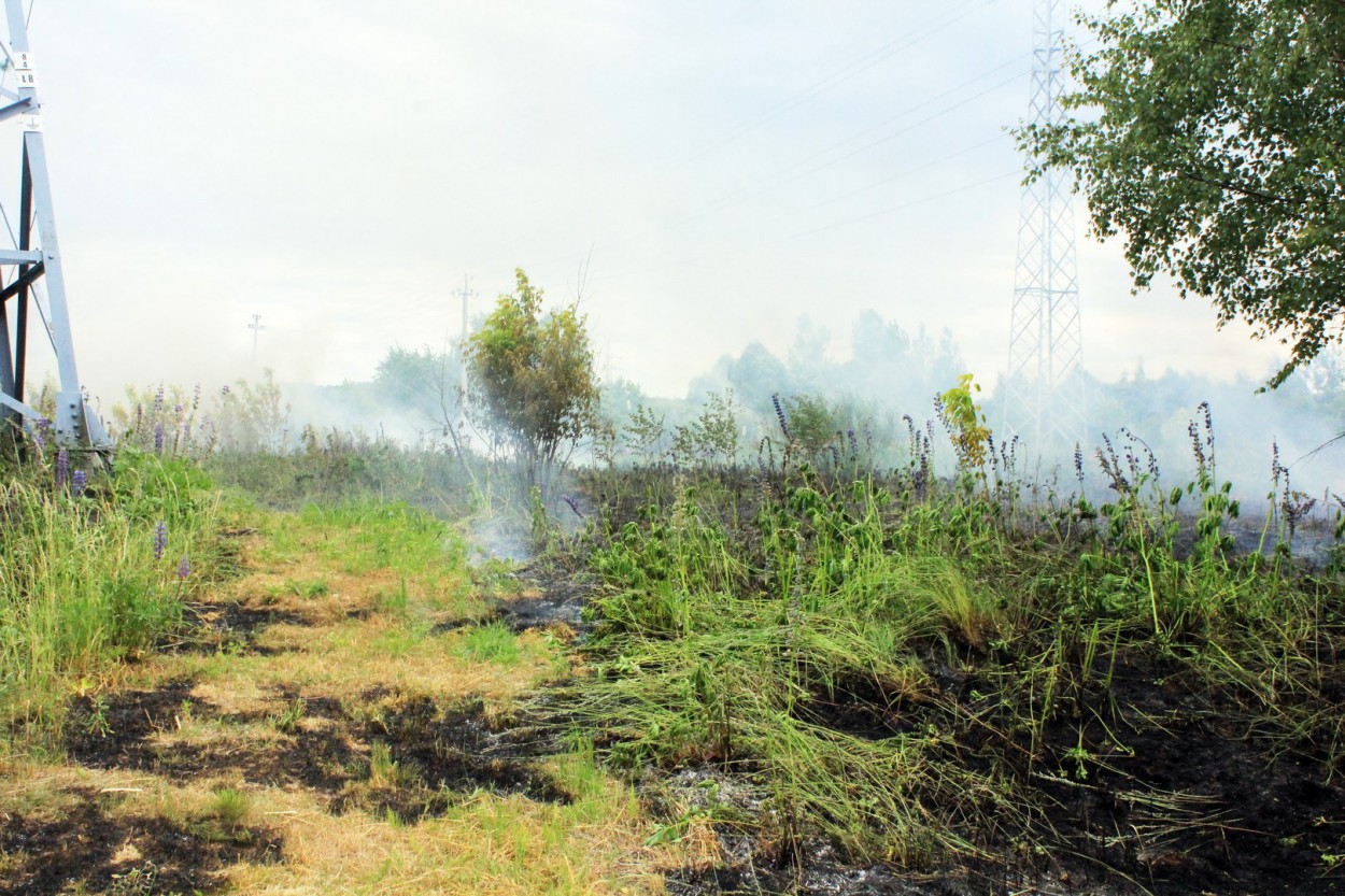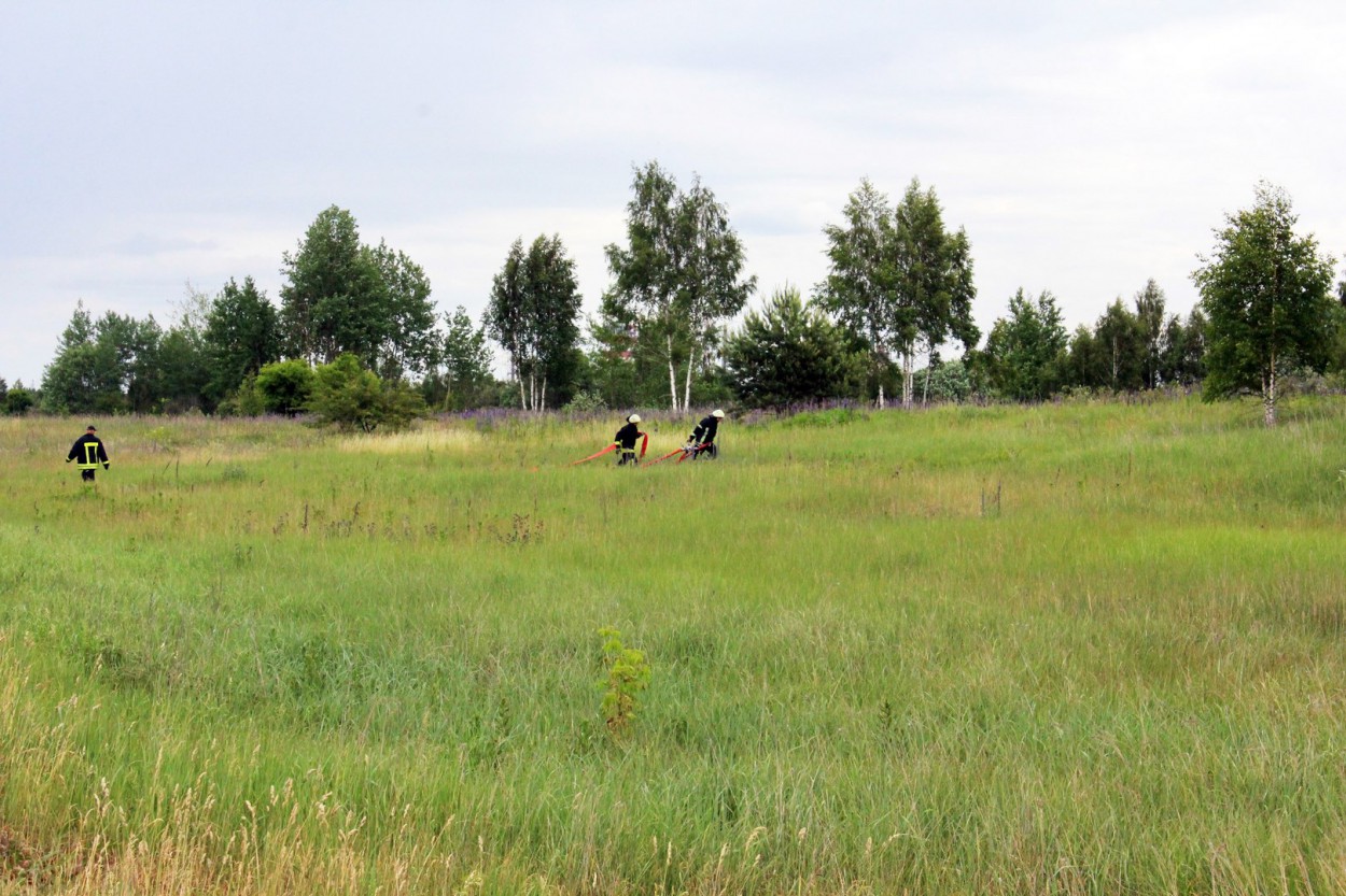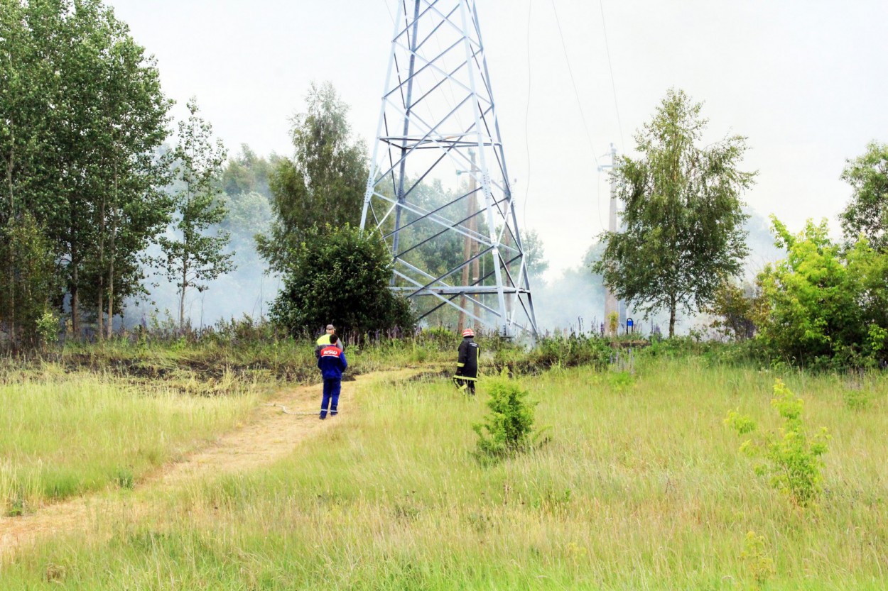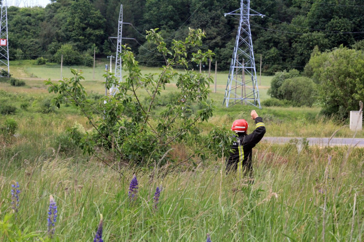 Įvykio vietoje paaiškėjo, kad dega maždaug pusės hektaro plotas, o gaisras kilo nuo nutrūkusių aukštos įtampos laidų.