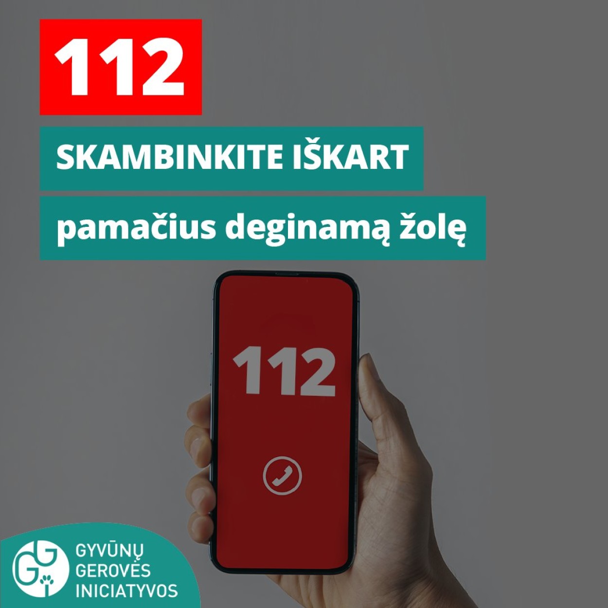 Pamatę deginamą žolę nedelskite – iškart skambinkite telefonu 112.