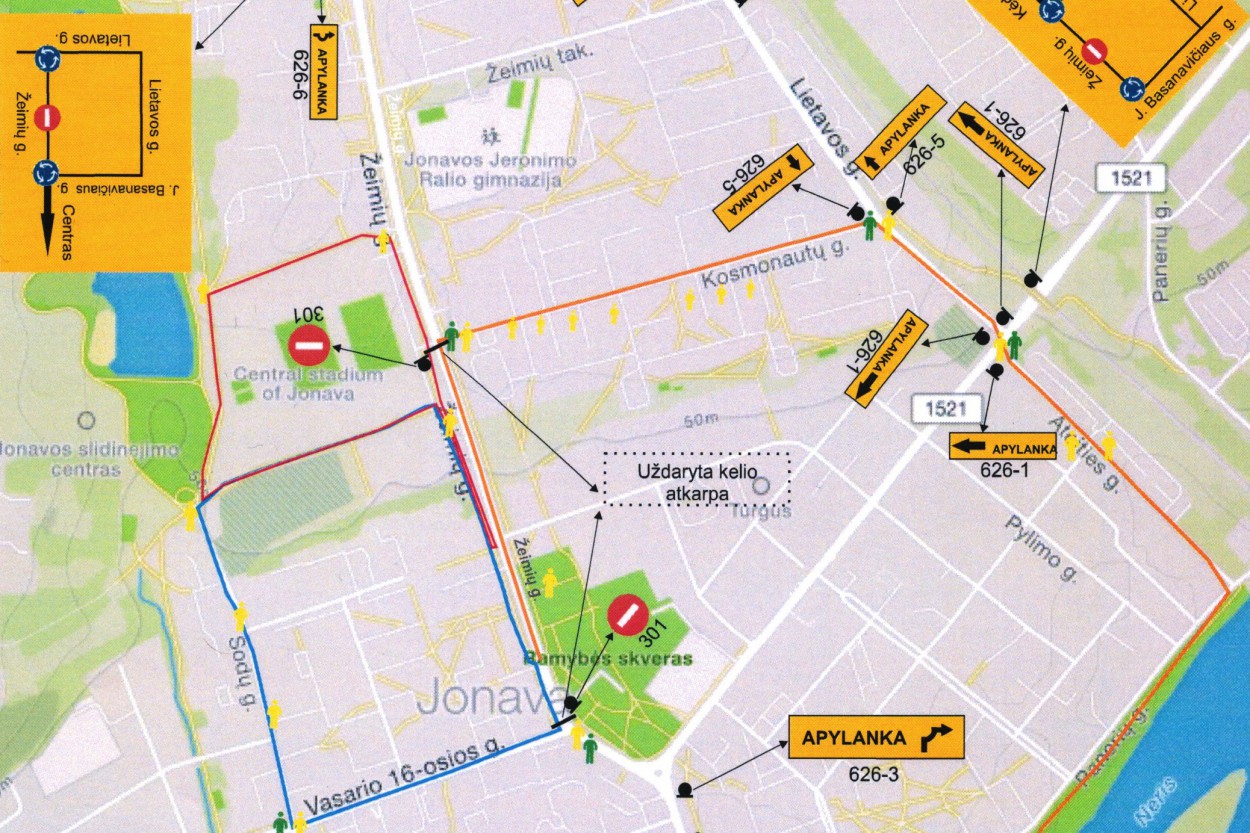 - Nuo 10 val. iki 16 val. transporto priemonių eismas bus draudžiamas Žeimių gatvės kelio atkarpoje nuo Kosmonautų iki Vasario 16-osios gatvės (apylanka per Lietavos, Kosmonautų ir J.Basanavičiaus gatves);