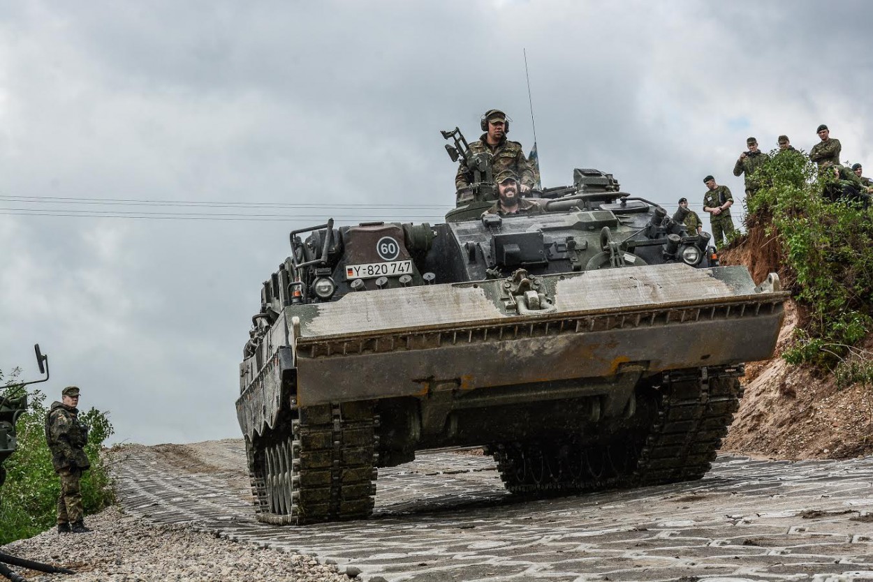 Lietuvos kariuomenės atstovas kapitonas Gintautas Ciunis: „Keliu Jonava-Vandžiogala birželio 21 d. ribojamas eismas dėl vykstančių pratybų "Geležinis vilkas" - šiandien vyksta persikėlimo per vandens kliūtį operacija.