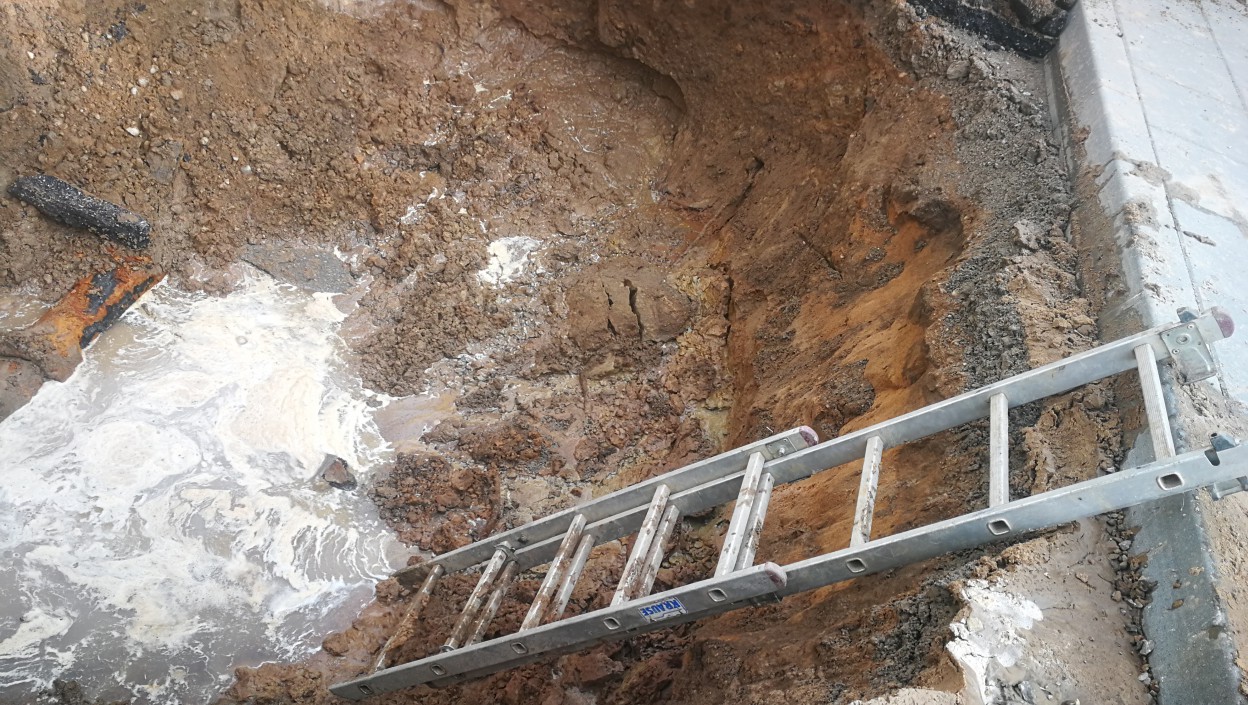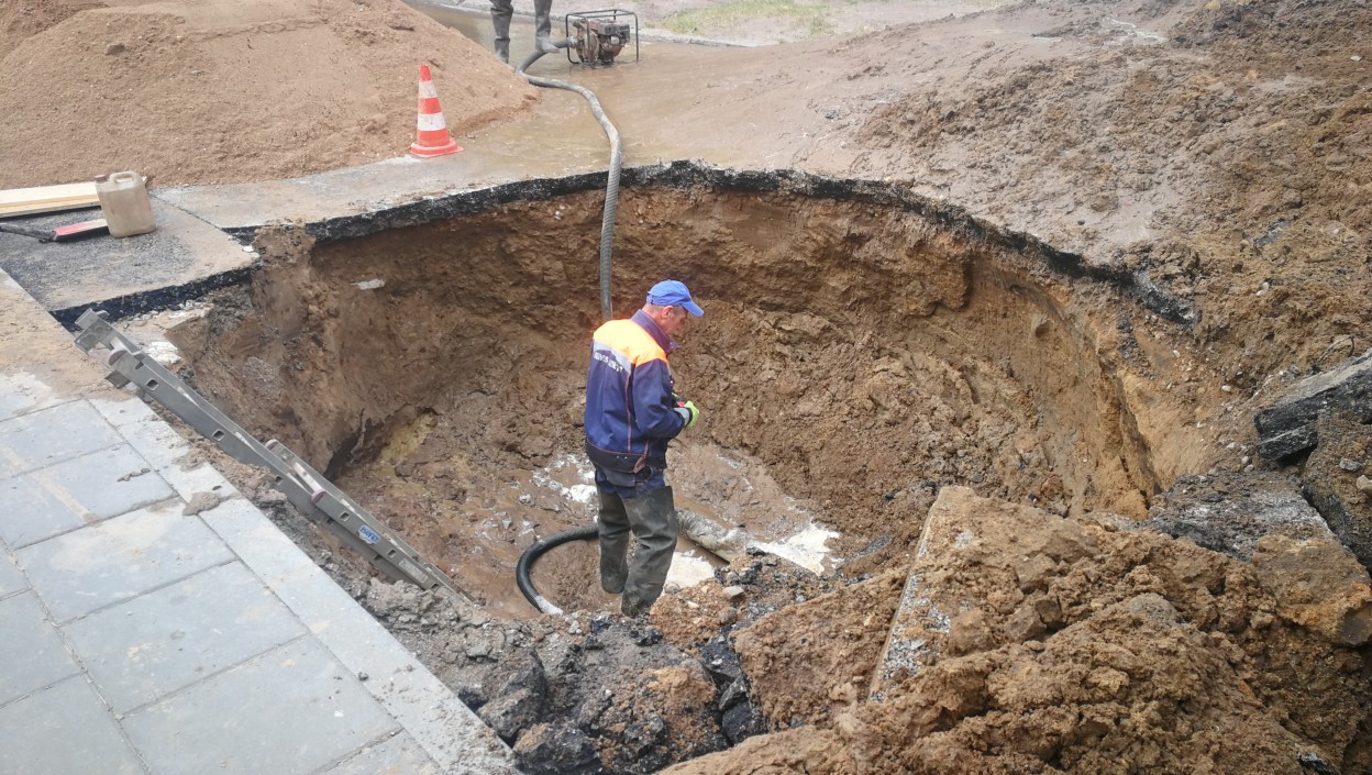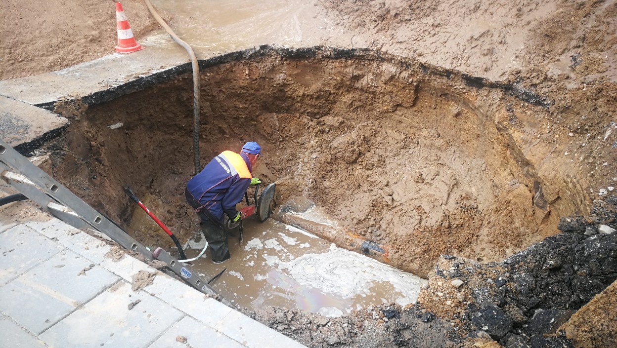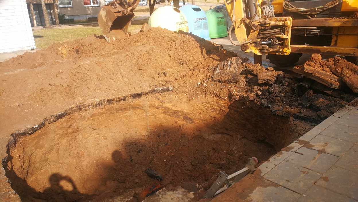 „Vakar vakare, prieš 12 val. mūsų avarinė tarnyba gavo pranešimą apie vandentiekio avariją ties Kosmonautų g. 9 namu. Pranešta, kad iš po asfalto veržiasi vanduo. Priežastis aiški – vamzdynai seni, kloti prieš 50 metų, trūko, ko pasekoje besiveržiantis 4 atmosferų slėgio vanduo, apie 200 kubų, išplovė gruntą, asfaltą – užteko 20 minučių. Atvykusi tarnyba užsuko vandenį, pastatė avarinius ženklus, laukėm ryto, kad pradėt darbus. Tikimės, kad per kelias valandas, jei nekils nesklandumų, nes šalia driekiasi dujotiekis, vandens tiekimą gyventojams atstatysim, baigus darbus, avarijos vietoje užliesim asfaltą. Ryte paaiškėjo, kad atsivėrė smegduobė ir į ją įvažiavo automobilis. Iš praktikos žinom, kad žalos atlyginimą spręs draudimo bendrovės“, - sakė bendrovės "Jonavos vandenys" direktoriaus pavaduotojas Romas Keliauskas.