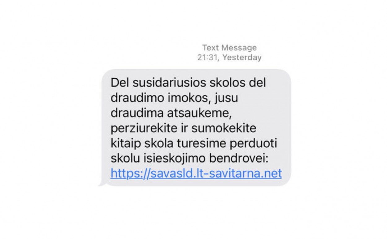 Pastarosiomis dienomis „Lietuvos draudimas“ fiksuoja išaugusį klientų skaičių, kurie praneša iš sukčių gavę klaidinančių pranešimų. Naudodami įprastą sukčiavimo būdą – SMS pranešimus – sukčiai gyventojams praneša apie neva dėl susidariusios skolos atšauktą jų draudimą ir, ragindami susimokėti skolą, nukreipia į fiktyvų interneto puslapį, rašoma bendrovės pranešime žiniasklaidai.