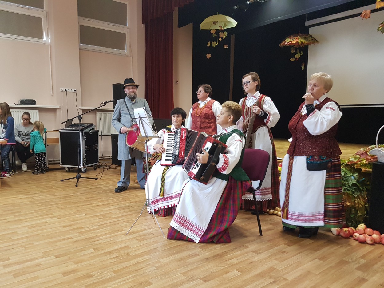 Uždarius sporto salės duris, šventė persikėlė į Žeimių mokyklos-daugiafunkcio centro aktų salę, kur šurmuliavo ūkininkų turgelis, klegėjo, žaidė ir šoko vaikai, skambėjo Juškonių kaimo kapelos dainos. Šventės dalyviai galėjo ne tik skambių dainų pasiklausyti, kaimiškų lašinukų, sūrio ar medaus nusipirkti, bet ir vaišinosi savo gamintais rudeniniais patiekalais. Gardžiai kvepėjo šiltučiai kibinai ir obuolių pyragai.