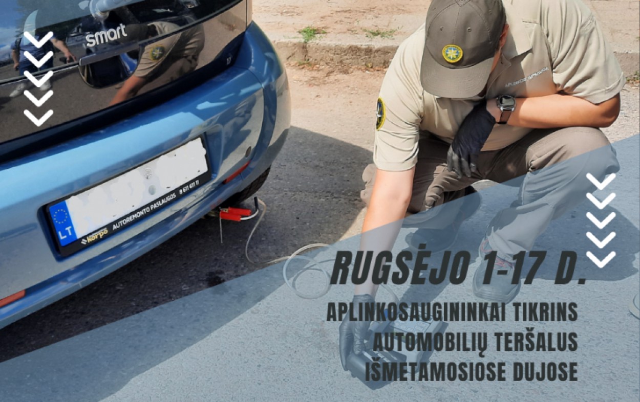 Aplinkos apsaugos departamento pareigūnai rugsėjį atliks anglies monoksido (CO) kiekio išmetamosiose dujose matavimus automobilių su benzininiais varikliais ir išmetamųjų dujų dūmingumo matavimus automobilių su dyzeliniais varikliais, įmonių ir fizinių asmenų veiklos vietose.