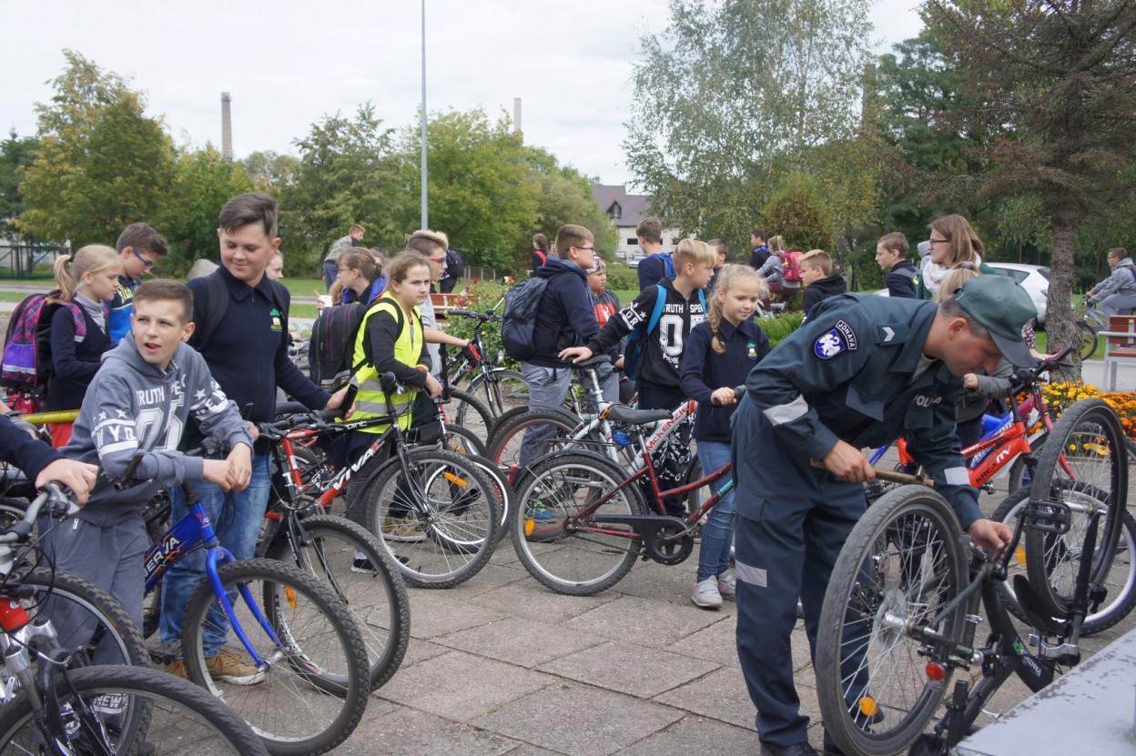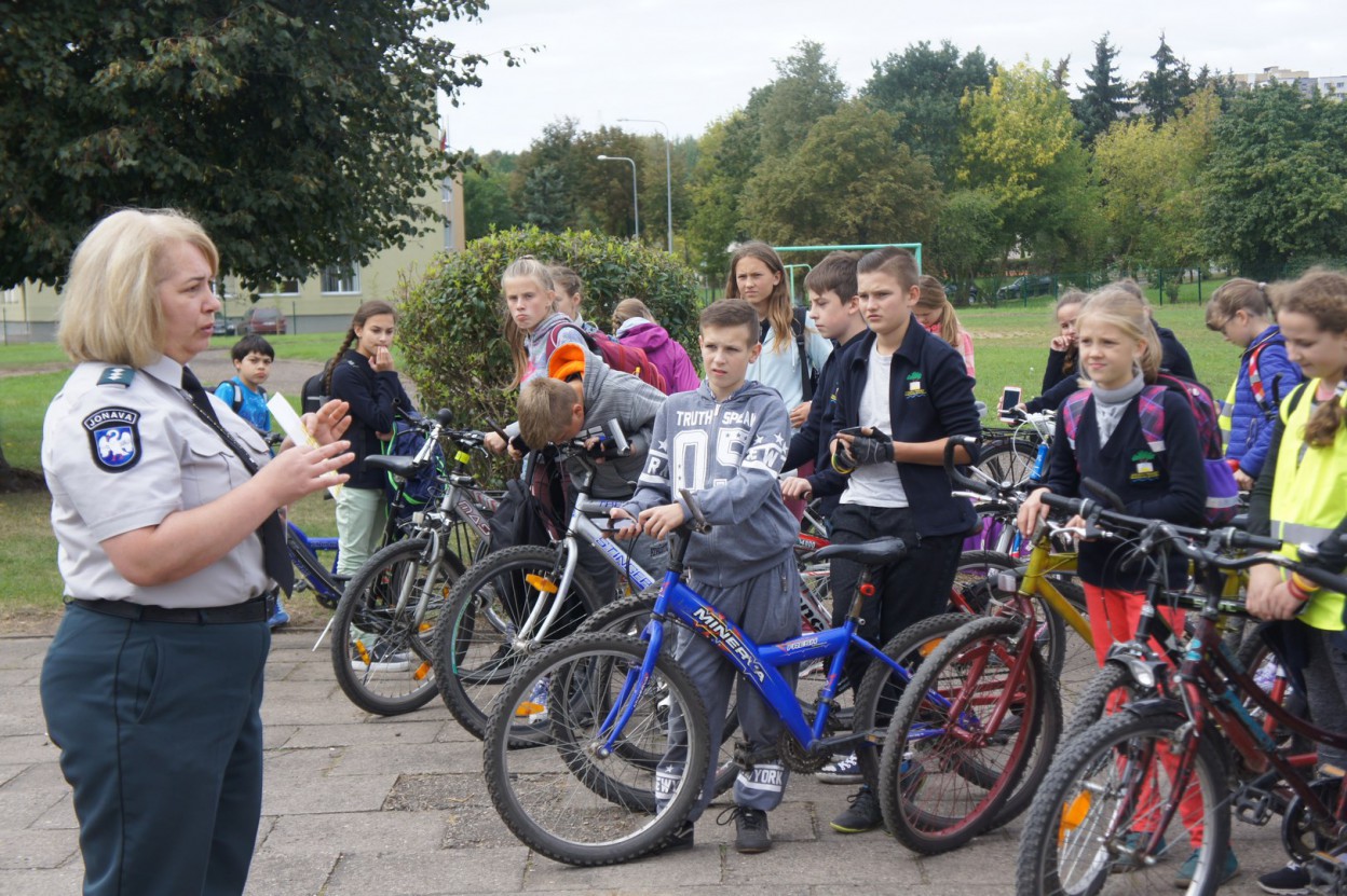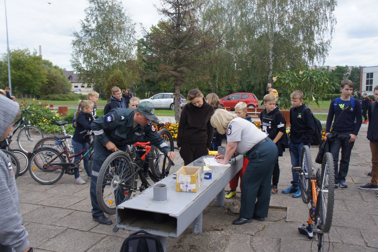 Grįžus prie mokyklos Jonavos policijos komisariato bendruomenės pareigūnė Larisa Paklina ir prevencijos poskyrio patrulis Rimantas Dirma ženklino visų pageidaujančių dvirates transporto priemones. Akcijos metu paženklinti 32 dviračiai.
