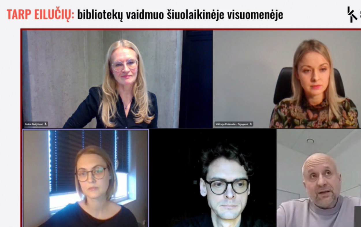 Diskusija apie bibliotekų vaidmenį šiuolaikinėje visuomenėje – Kultūros ministerijos kartu su partneriais rengiamo diskusinių renginių ciklo „Tarp eilučių“, skirto pažvelgti į įvairias kultūros sritis bei reiškinius medijų ir informacinio raštingumo aspektu, dalis.