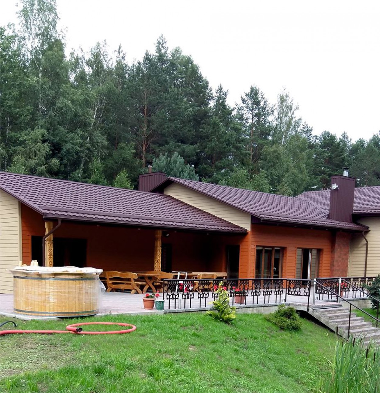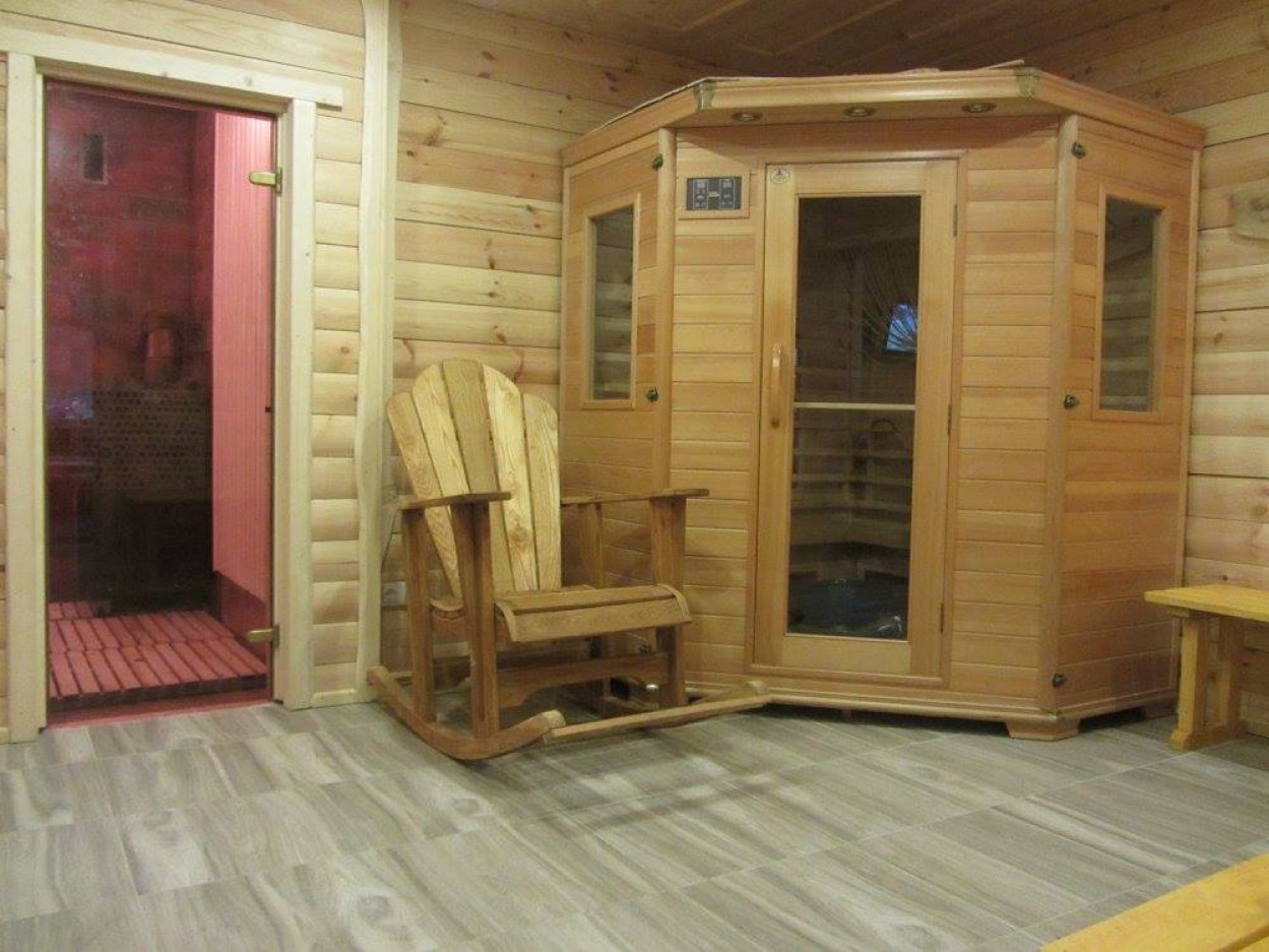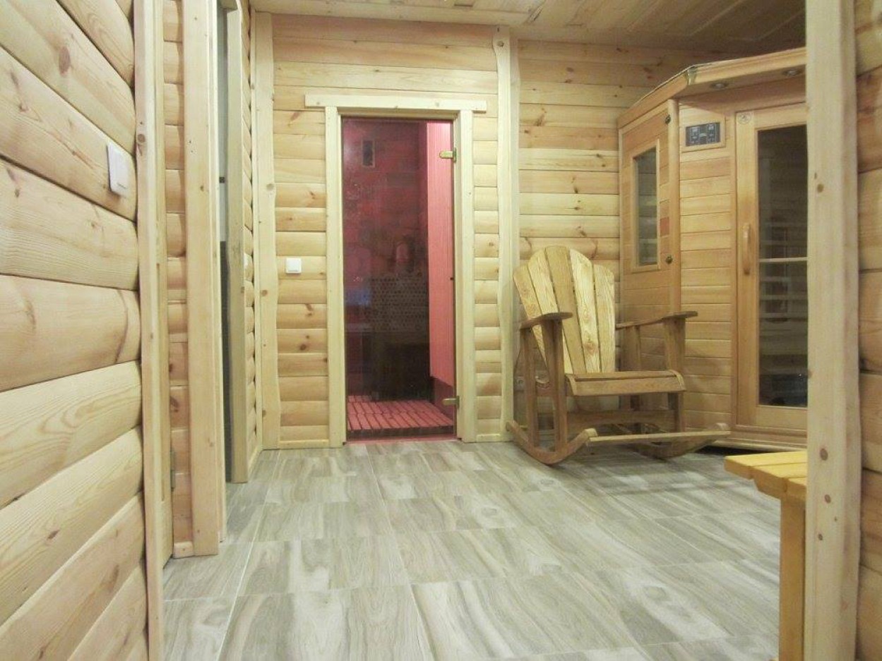 Veikia dvi pirtys – tradicinė bei infraraudonųjų spindulių, yra erdvus priepirtis, biliardo stalas, o greta sodybos – tvenkinys.