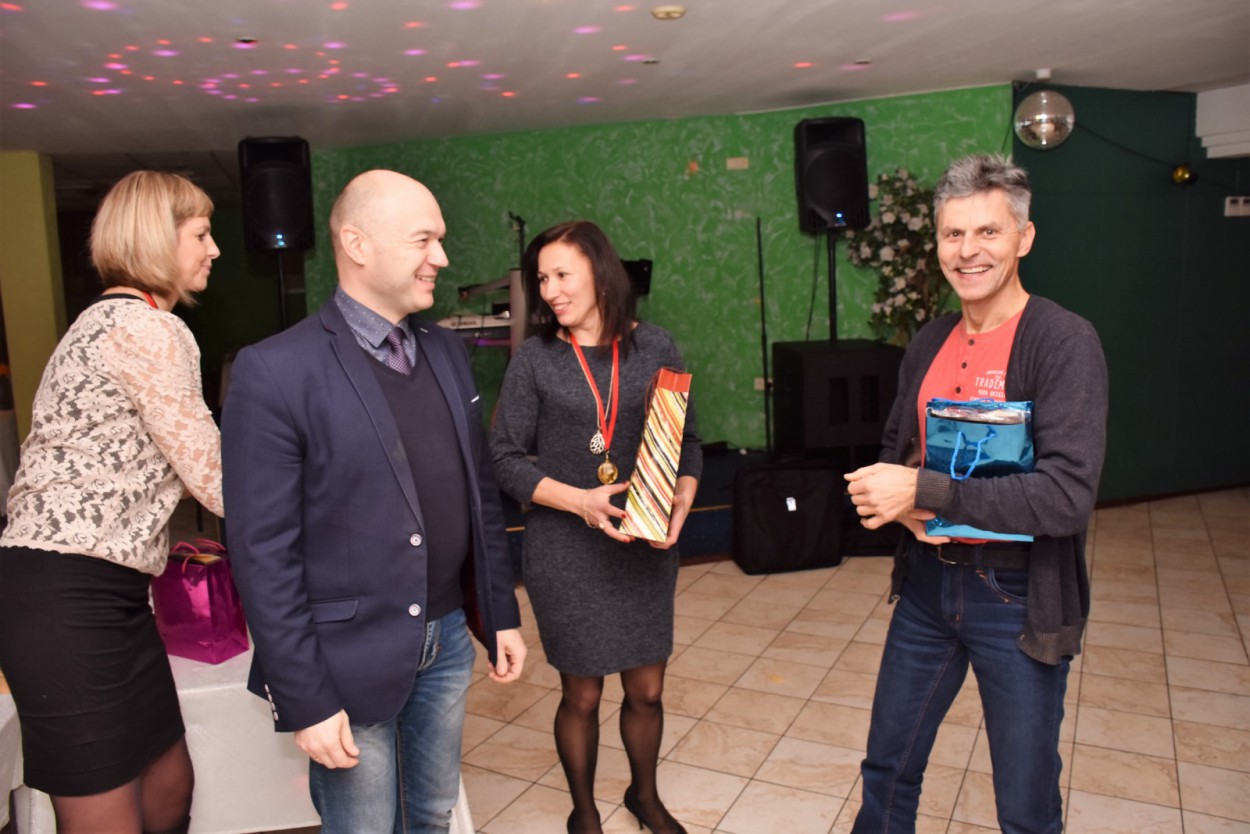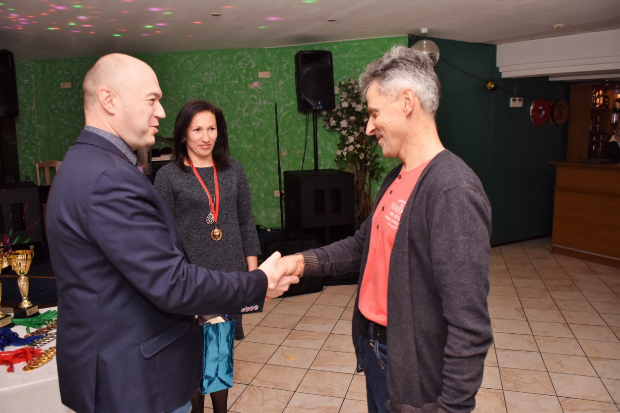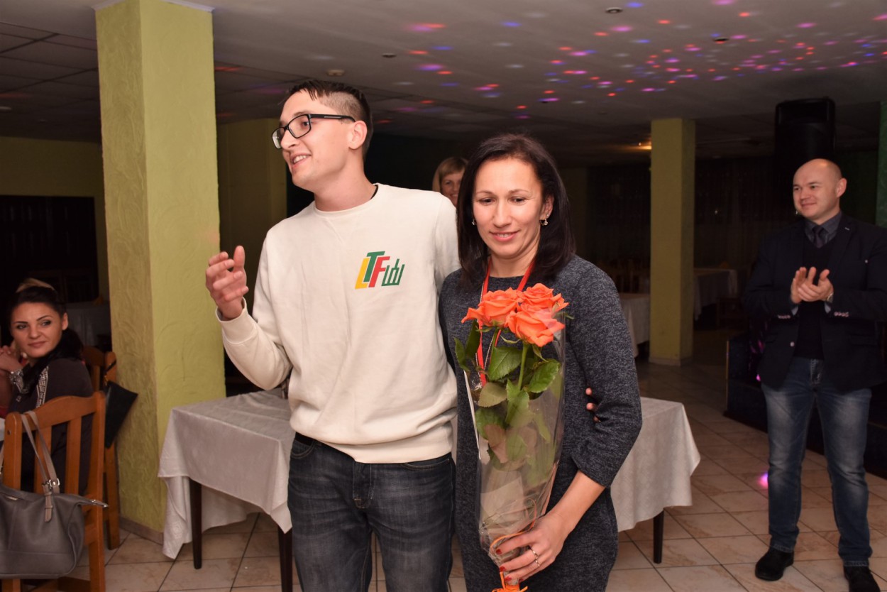 Po varžybų kavinėje „Svetainė“ vykusioje vakaronėje sveikino ir apdovanojimus teikė mero pavaduotojas Eugenijus Sabutis bei „Aušrinė“ komandos narės – R. Lisauskienė bei R. Knatienė.
