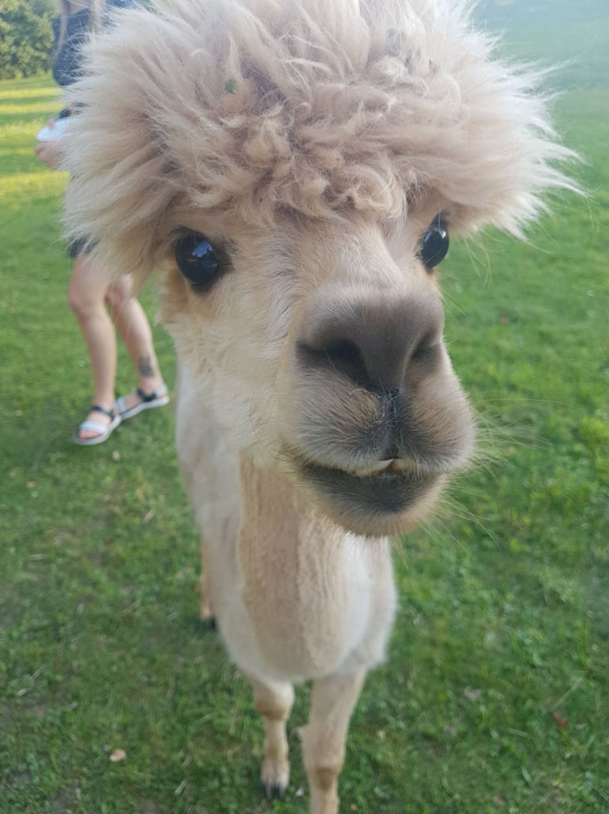 Kitos alpakos: Ona, Barbė, Beigė, Karamelė – noriai kontaktuoja su žmonėmis, o jei dar pabarškinsite dubenėlį su mėgiamais papildais, jos drąsiai juos ragaus, kad ir tiesiai iš delno.