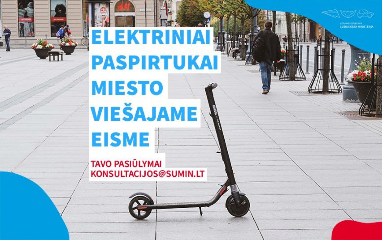 Susisiekimo ministerija kreipiasi į visas šalies savivaldybes kviesdama diskutuoti dėl e-paspirtukų dalyvavimo viešajame eisme tvarkos. Laukiama ir gyventojų nuomonės – savo pasiūlymus galima teikti el. paštu konsultacijos@sumin.lt .