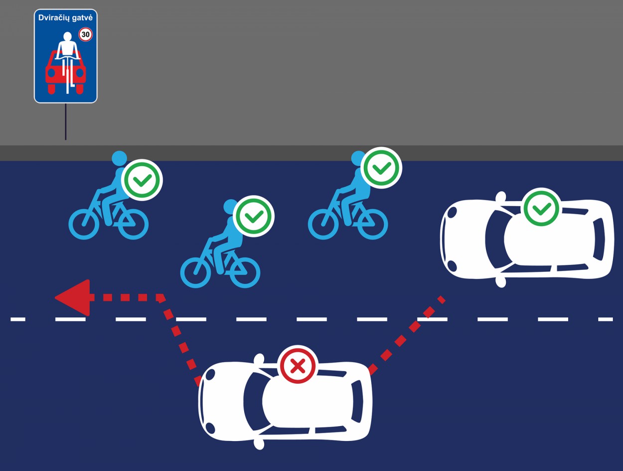 Siekiant sudaryti kuo saugesnes sąlygas dviračių eismui ir sprendžiant dviračių infrastruktūros trūkumo klausimą, tose vietose, kur negalima įrengti dviračių takų ar dviračių juostų, gali būti įrengiamos dviračių gatvės, žymimos nauju kelio ženklu „Dviračių gatvė“.