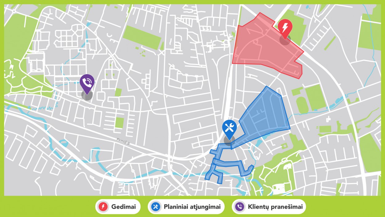 Nuo šiol veikiantis atjungimų žymėjimas teritorijomis leis greitai ir aiškiai pamatyti, ar gedimas paveikia konkretų objektą: namą, daugiabutį ar sodybą.