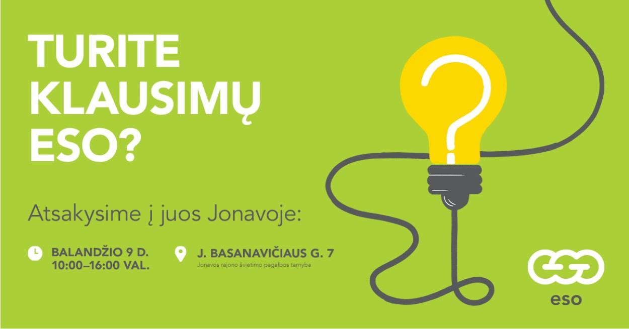 Susitikimas vyks Jonavos rajono švietimo pagalbos tarnybos patalpose (J. Basanavičiaus g. 7), kur nuo 10 iki 16 val. gyventojus konsultuos ir informaciją teiks ESO specialistai.