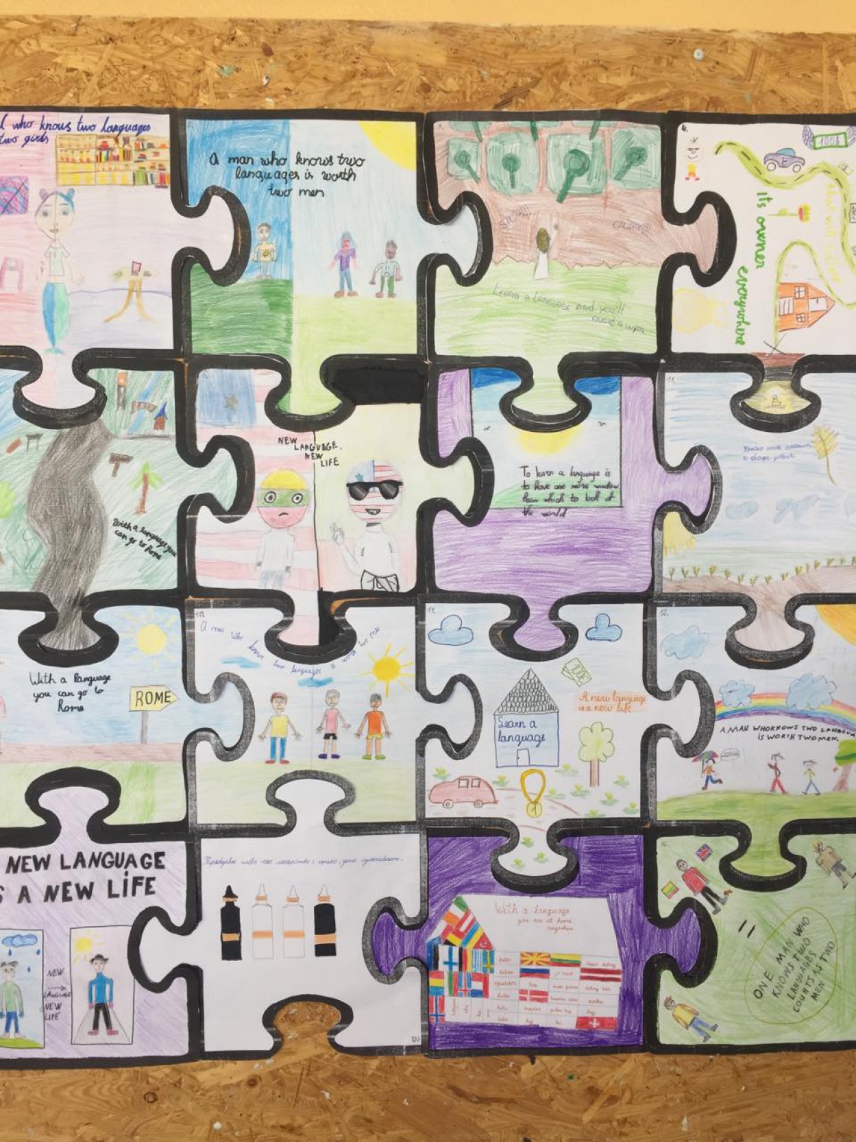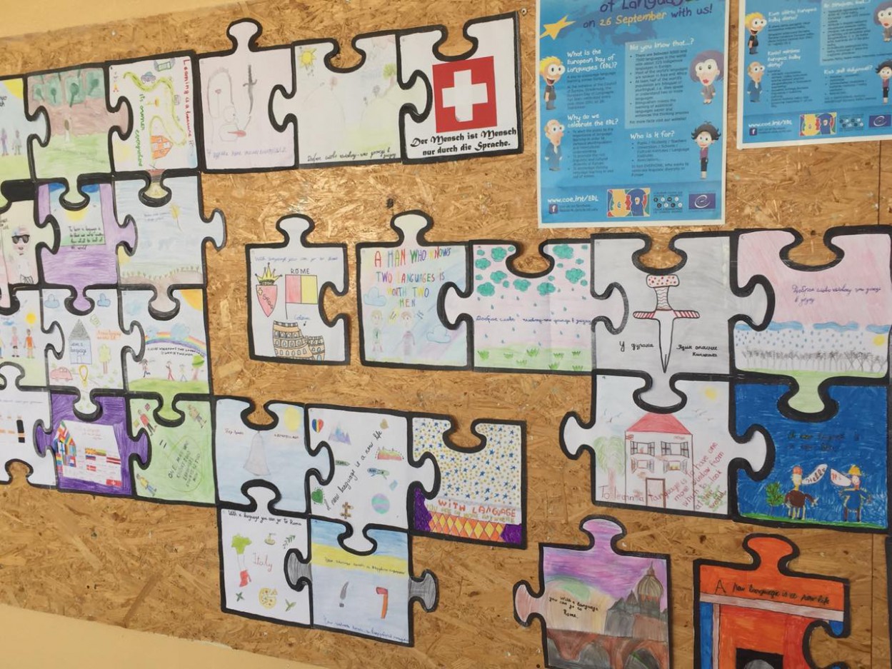 Šiais metais savaitė prieš Kalbų dieną mūsų mokiniams buvo itin „karšta“: jie rinko posakius bei lietuvių kalbos patarles apie kalbą ir ieškojo jų atitikmenų kitose kalbose. Tada patarles iliustravo ir jas sujungė į dėliones. Šios dėlionės papuošė mūsų mokyklos erdves.