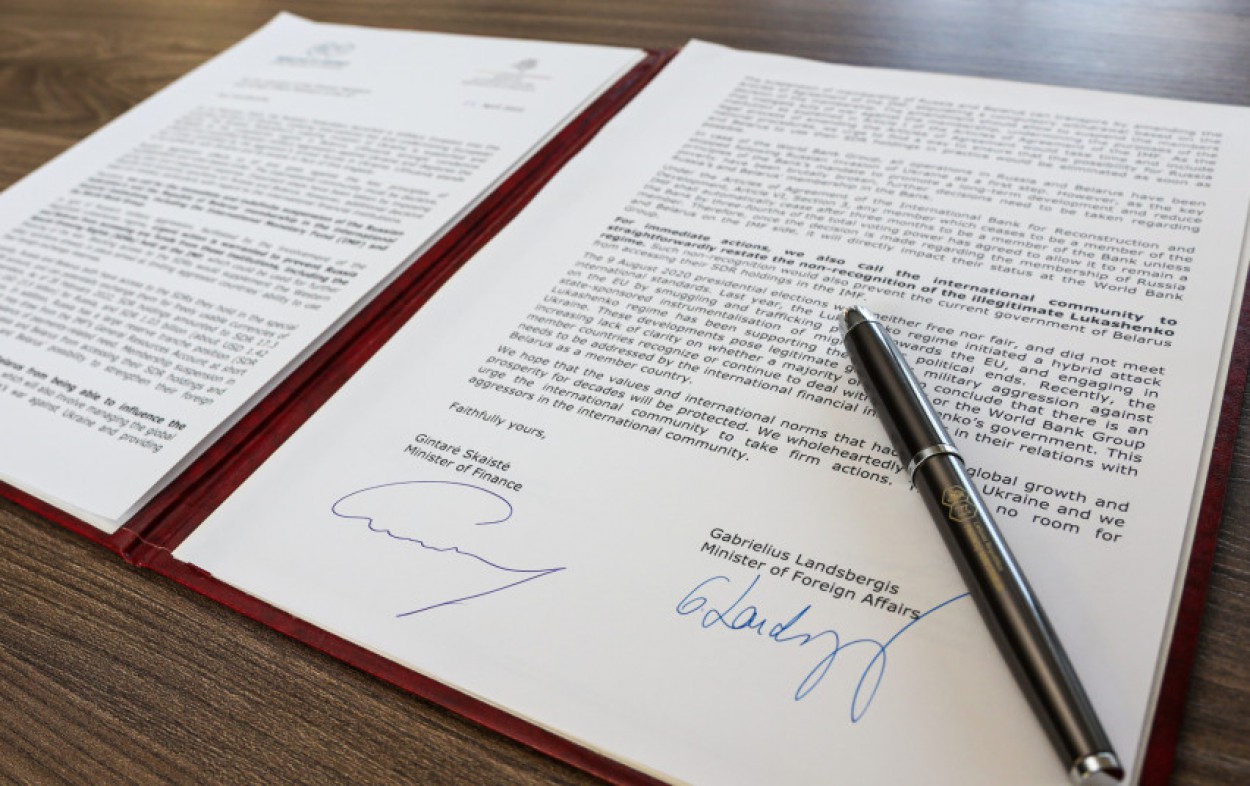 Lietuvos finansų ministrė Gintarė Skaistė ir užsienio reikalų ministras Gabrielius Landsbergis kreipėsi į didžiojo septyneto (G7) valstybių finansų ir užsienio reikalų ministrus, ragindami nedelsiant neterminuotai suspenduoti karą Ukrainoje vykdančios Rusijos ir jos sąjungininkės Baltarusijos narystę tarptautinėse finansinėse institucijose, įskaitant Tarptautinį valiutos fondą (TVF) ir Pasaulio banko grupę (PBG).
