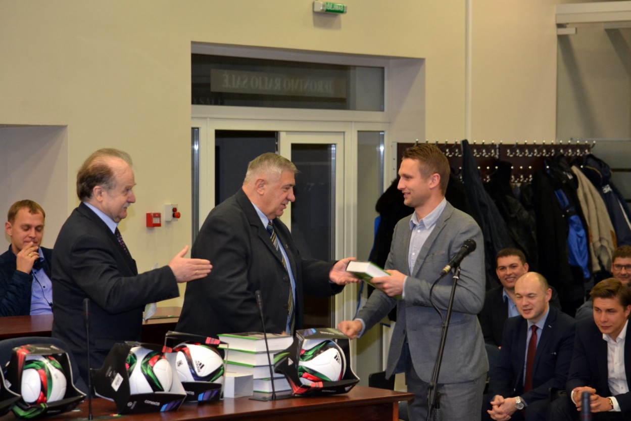 Daug žodžių pasakė ir padrąsinimo žaisti aukščiausioje lygoje suteikė Kauno apskrities futbolo federacijos viceprezidentas Romas Pikčilingis, kuris kartu su LFTA nariu Edmundu Zieniumi teikė atsivežtas dovanas labiausiai nusipelniusiems futbolininkams ir prie futbolo prisidėjusiems žmonėms.