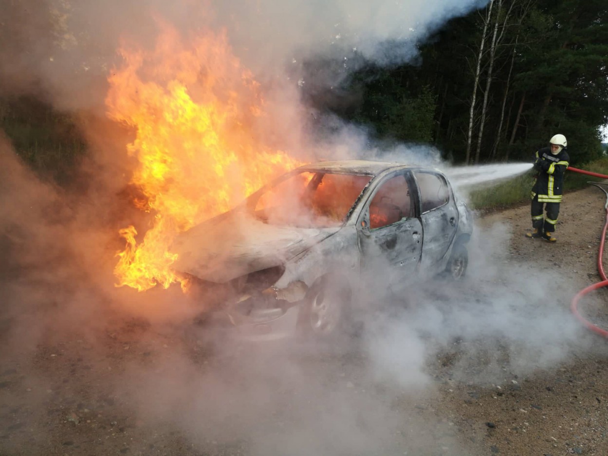 Į įvykio vietą atskubėję Jonavos ugniagesiai gelbėtojai aptiko, kad atvira liepsna dega „Peugeot 206“ automobilis.