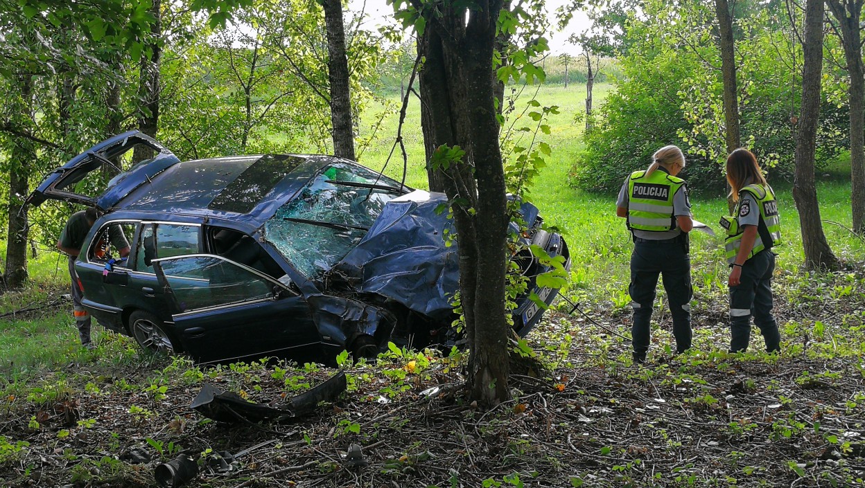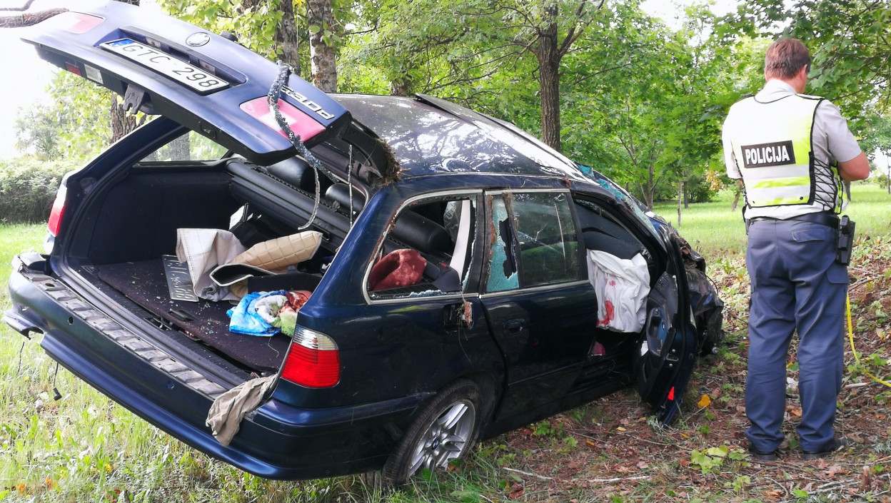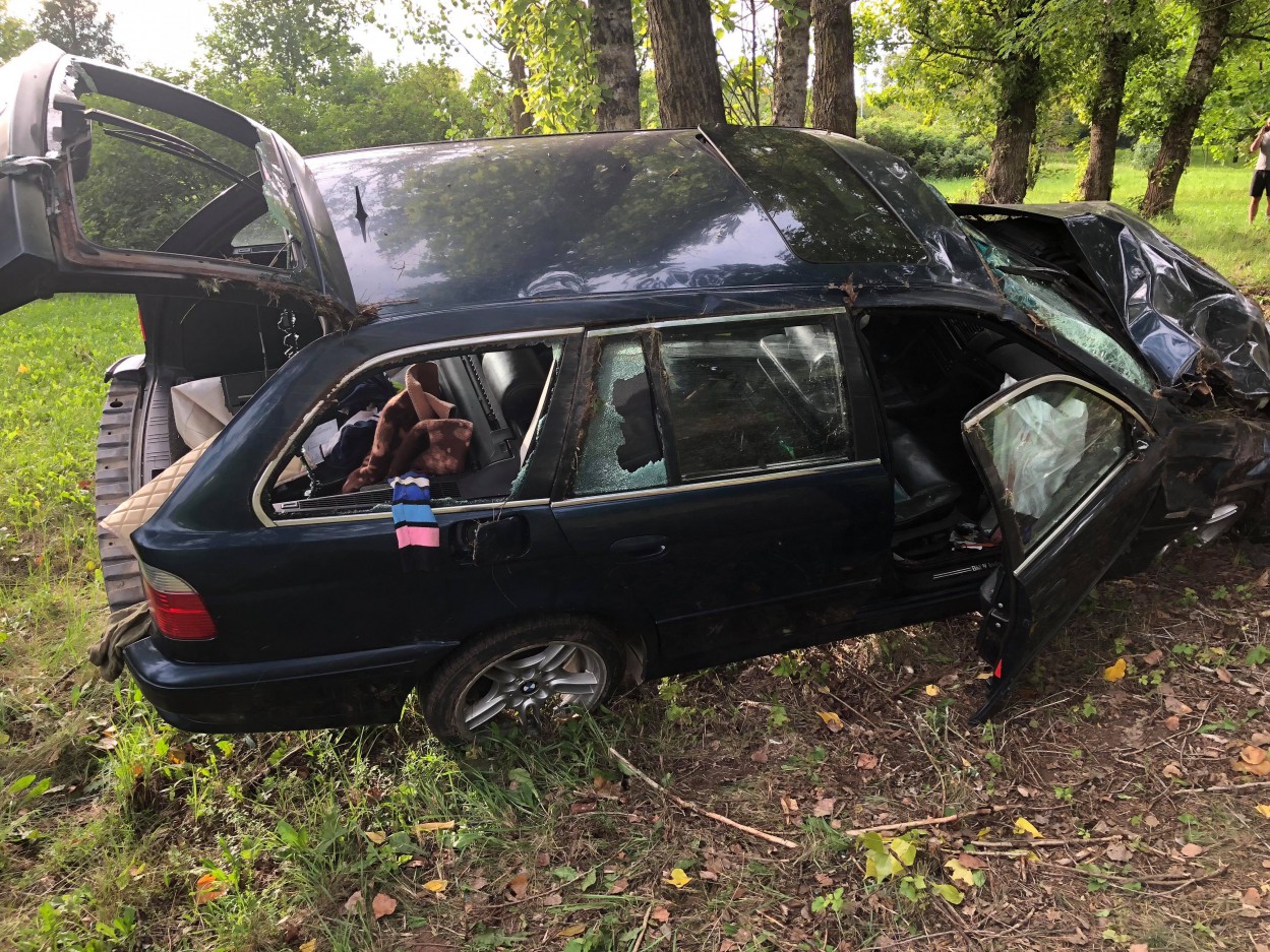 BMW 5 klasės automobilio vairuotojas, nepasirinkęs saugaus greičio posūkyje nesuvaldė automobilio ir nuvažiavo nuo kelio, atsitrenkė į medžius. Pirminiais duomenimis automobilis nuo kelio į miškelį praskriejo apie 100 metrų.