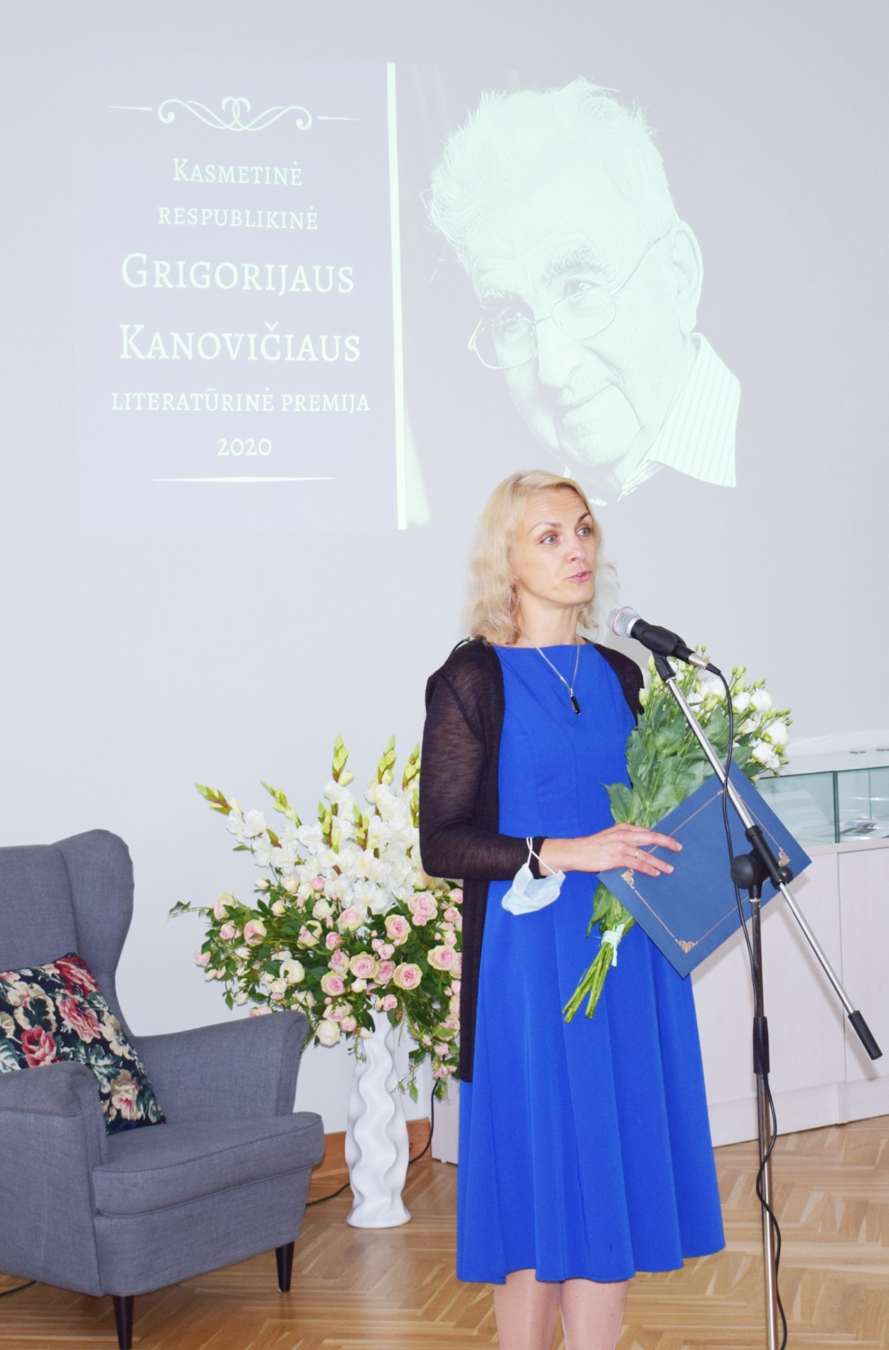 Jos 2019 m. išleistas romanas „MEMENTO GRODNO: dingusi Lietuvos Gardino istorija“ literatūros kūrinius vertinusios komisijos sprendimu pripažintas kaip geriausiai atskleidęs pasirinktą istorinės atminties temą. Atsakomybė išrinkti ketvirtąjį premijos laureatą teko žurnalistui, publicistui ir politikos apžvalgininkui Donatui Pusliui, literatūros kritikui Ramūnui Čičeliui ir literatūrologei, G. Kanovičiaus kūrybos tyrinėtojai Rimai Kasperionytei.