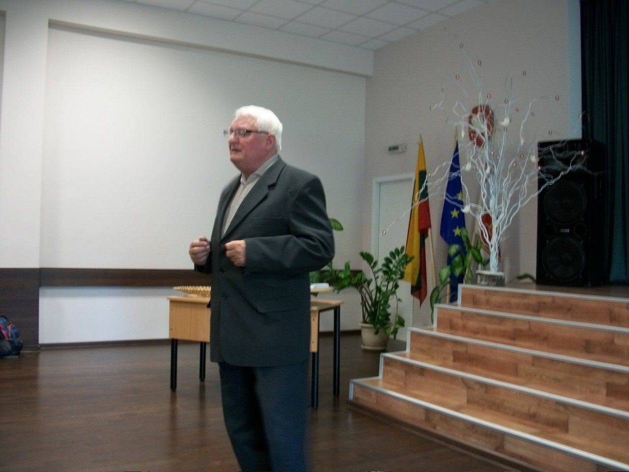 Mokiniai turėjo progą persikelti į tolimą praeitį, išgirsti istorinių faktų apie Jonavos krašte veikusius Vyčio apygardos partizanus, gauti atsakymus į iškilusius klausimus. Be kitų veiklų, didžiausio dėmesio sulaukė mokyklos aktų salėje vykęs susitikimas su jonaviečiu Vaclovu Slivinsku, kuris labai aktyviai domisi Jonavos ir gretimų rajonų praeitimi, kruopščiai renka istorinius faktus apie laisvės kovų žymesnius dalyvius, yra ne vienos knygos sudarytojas. Svečias 5-6 klasių mokiniams išsamiai pasakojo apie tai, kodėl pokariu jaunimas išėjo į miškus, darė slėptuves, kasė bunkerius, organizuotai telkėsi į būrius, apygardas. Paaiškino, kodėl visi partizanai turėjo slapyvardį. Beje, vaikai jam pateikė nemažai klausimų. Susirinkusiesiems V. Slivinskas pristatė ir savo naują knygą „Partizano Balčio užrašai“.
