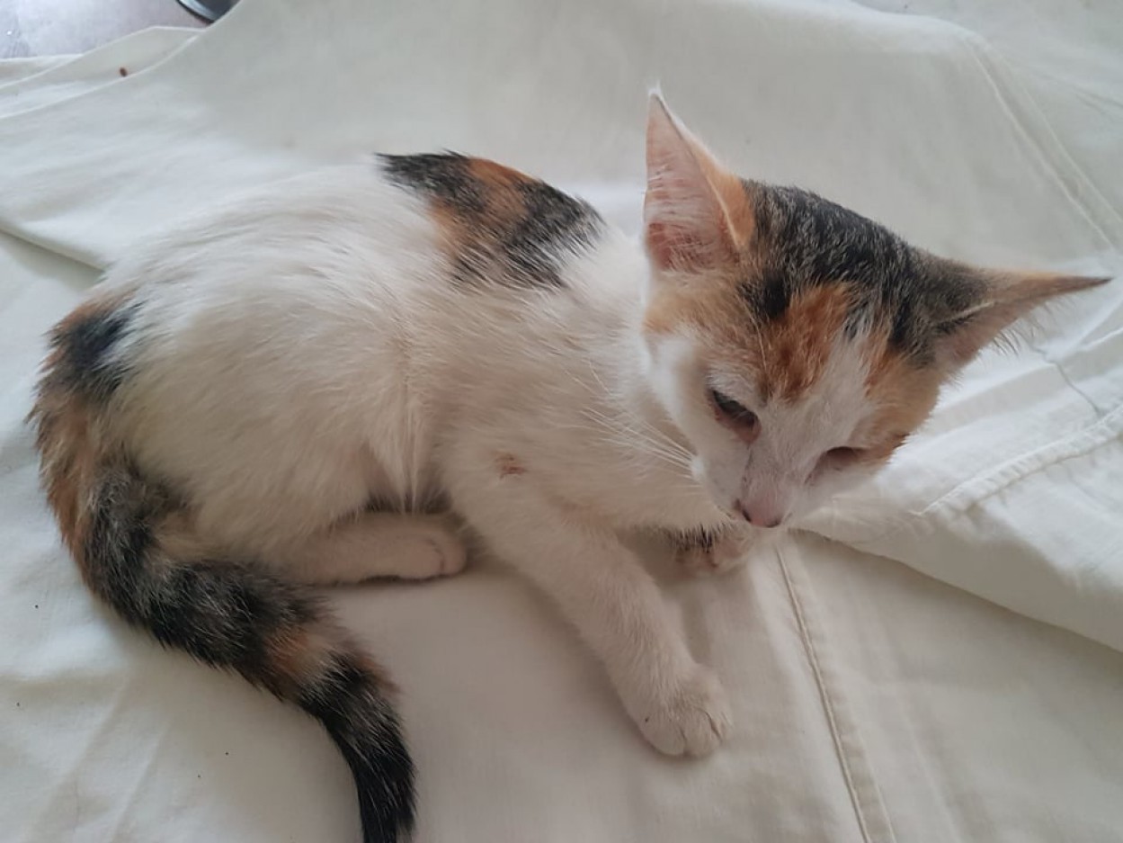 Katinas pristatytas į "Sabveta" veterinarijos kliniką. Veterinarės daro viską, jog padėtų likimo nuskriaustam vargšiukui.