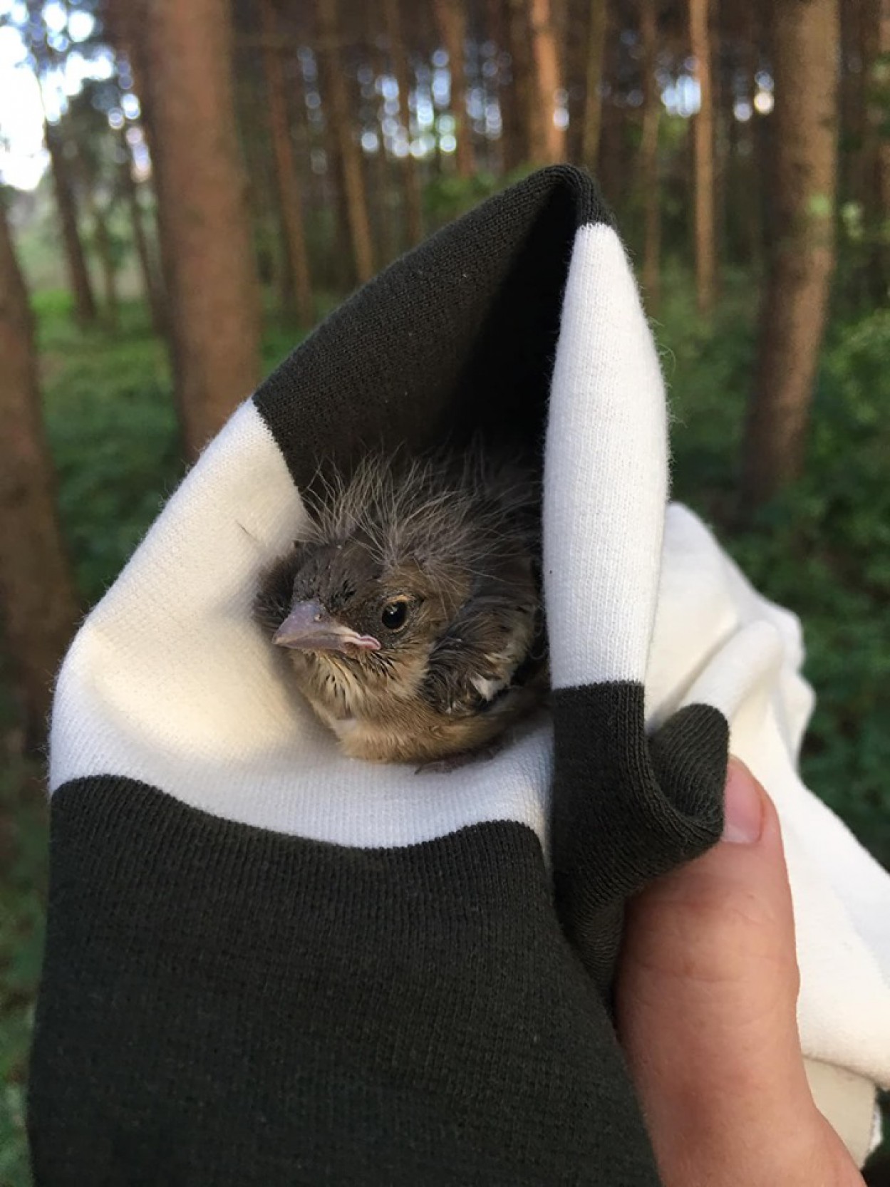 Jei surastasis paukščiukas dar plikas ir savarankiškai labai mažai juda, apsidairykite jo lizdo ir įkelkite į jį. Svarbu, kad lizde būtų tokie pat paukščiukai, kaip ir jūsų rastieji. Jei jis suardytas ar iškritęs, įkelkite atgal ar įrenkite kuo panašesnį kitą. Namuose tokio amžiaus jauniklius išauginti yra nepaprastai sunku;