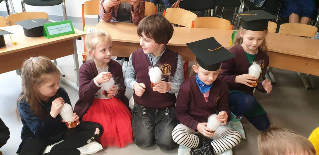 Mokslo šventę vainikavo UAB „Gaschema“ padovanotas „Sauso ledo šou“. Esame dėkingi įstaigos generaliniam direktoriui Valdemarui Vareikai už suteiktą galimybę patyrinėti sauso ledo savybes, o Skaistei Vaičiulaitytei ir Redai Chamanskienei už nepakartojamą reginį ir skanius kokteilius.
