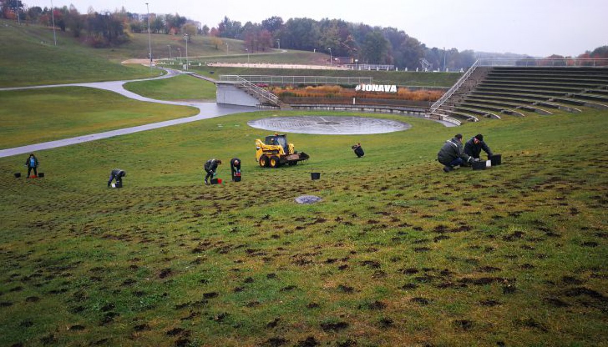 Nuotraukoje - krokų sodinimo akimirkos.
