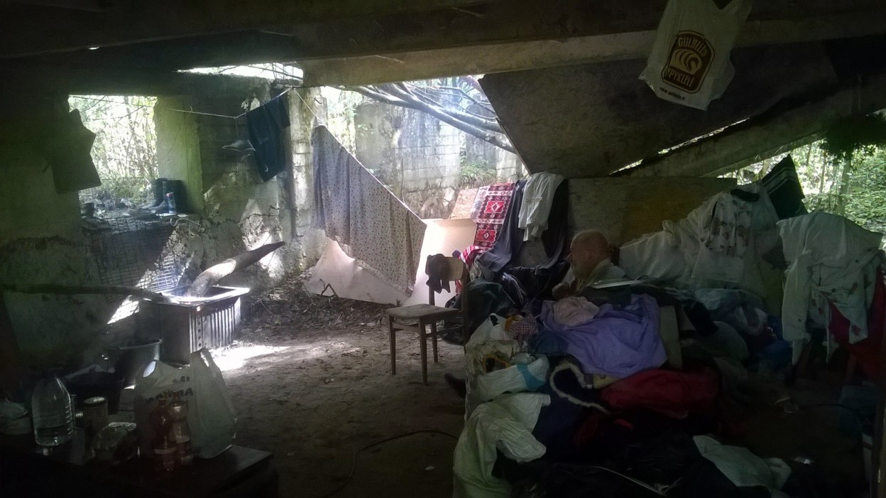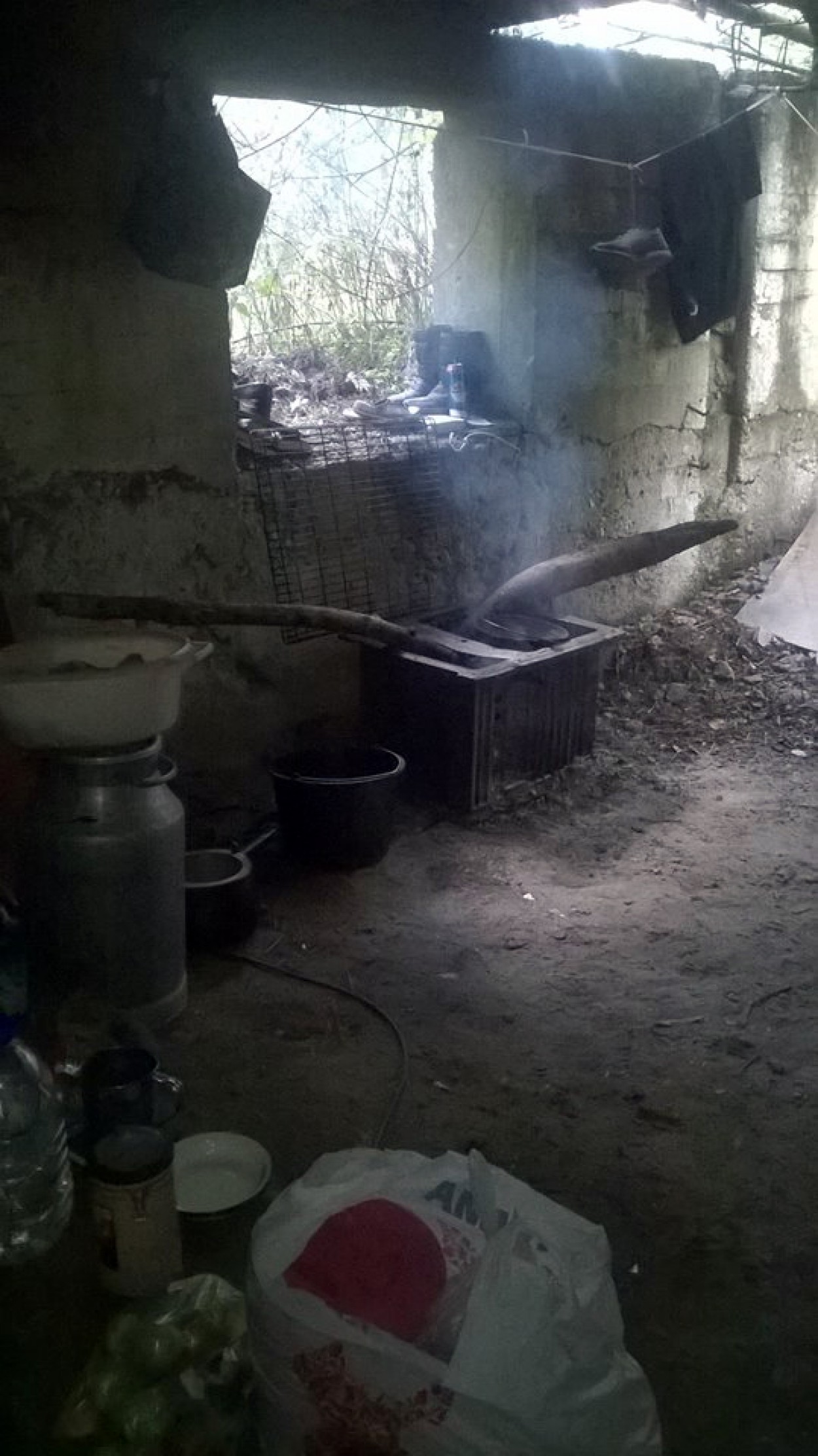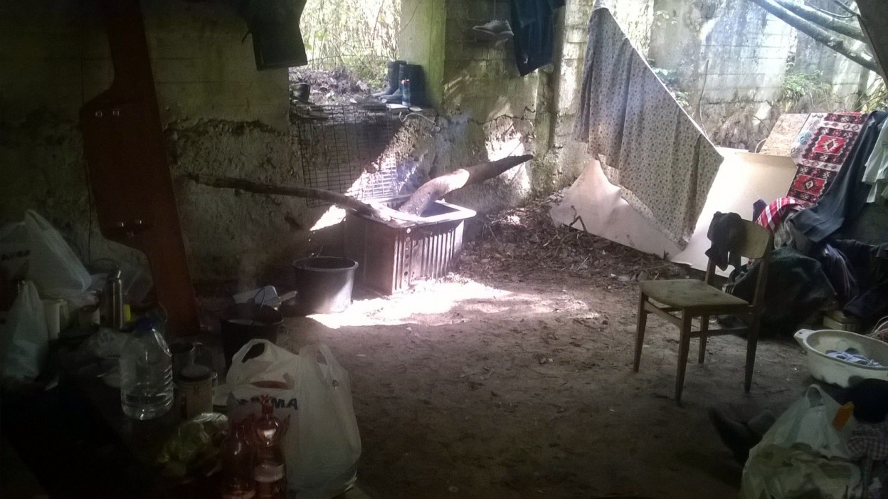 Atskirose apgriuvusio pastato erdvėse “įrengta” virtuvė ir miegamasis, netoliese pastatyta palapinė. Čia pat, beveik lauke, trijų mėnesių kūdikis buvo ir perrenginėjamas. Nors greta sumūrytas pečius, tačiau jo šiluma beveik atviros vietos sušildyti tiek, kad būtų galima gyventi, negali.
