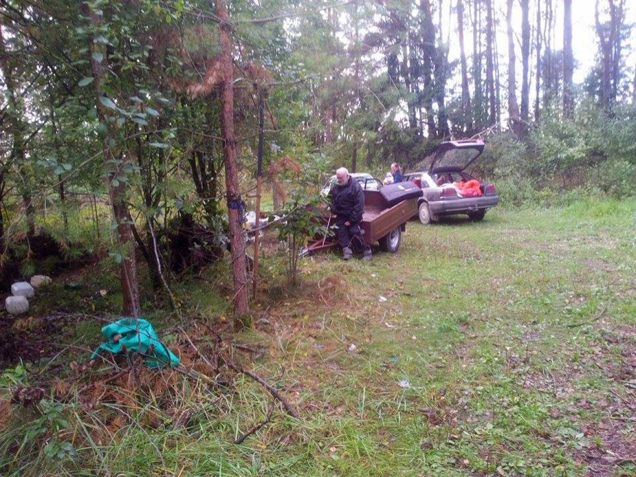 Į Šveicarijos seniūnijos miškus šeima, anot jų pačių, atvažiavo prieš keturias dienas. Į mišką iš Prienų rajono jie atsigabeno visą mantą – drabužius, kitus daiktus, palapinę, tris šunis. Tiesa, daiktų nebuvo tiek daug – viskas tilpo į lengvojo automobilio priekabą.