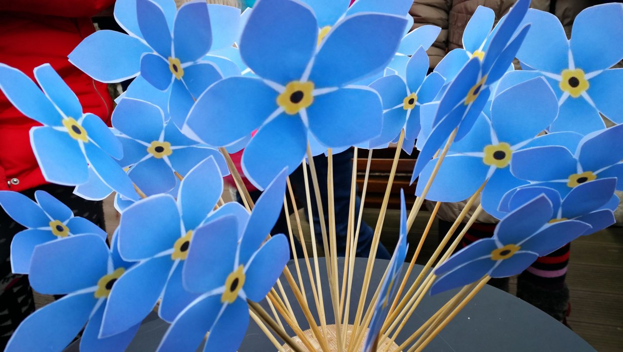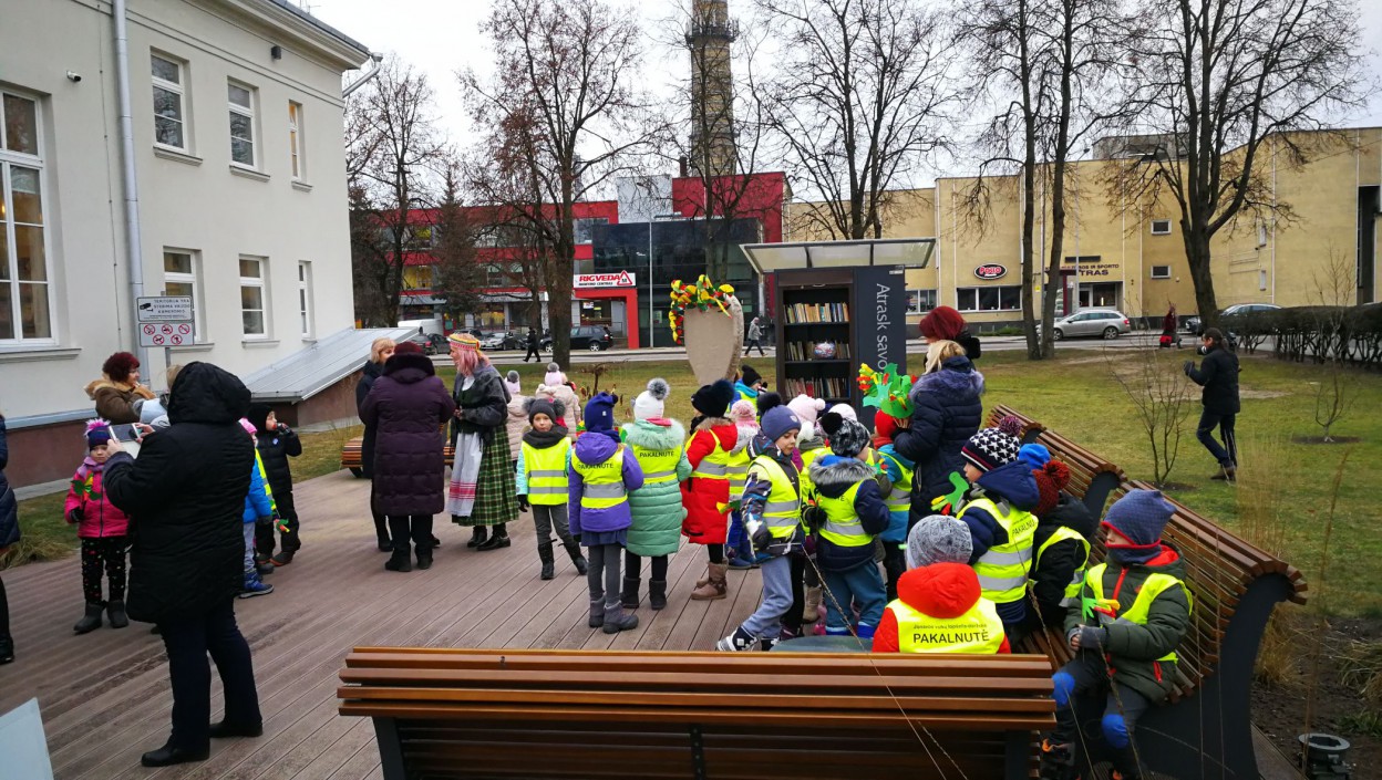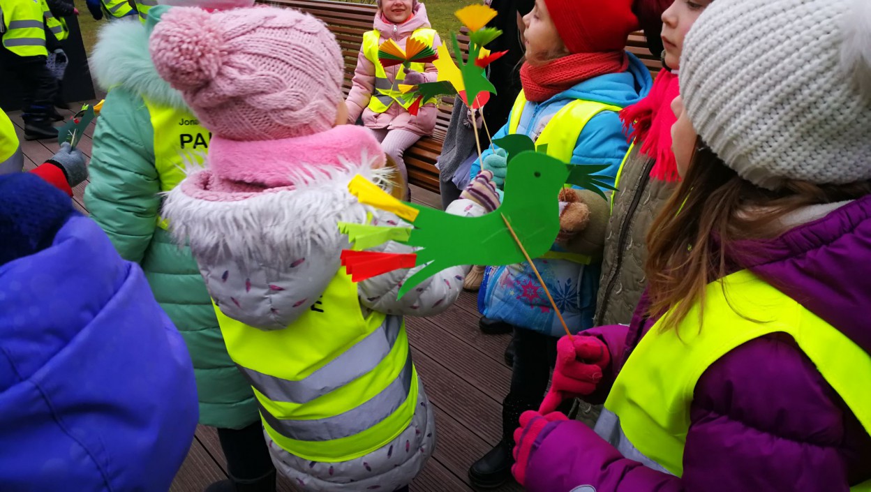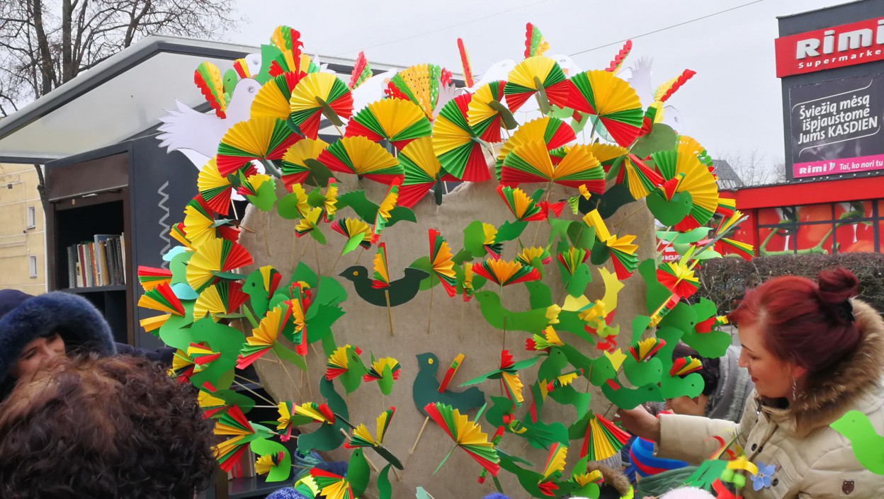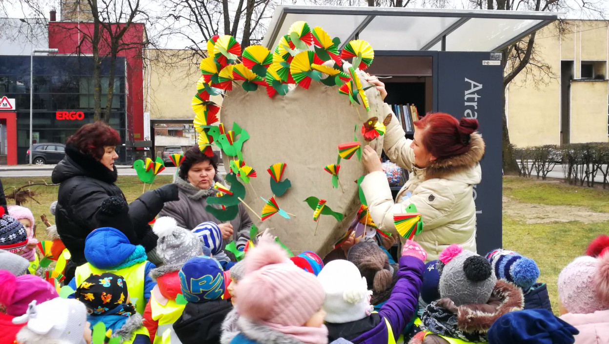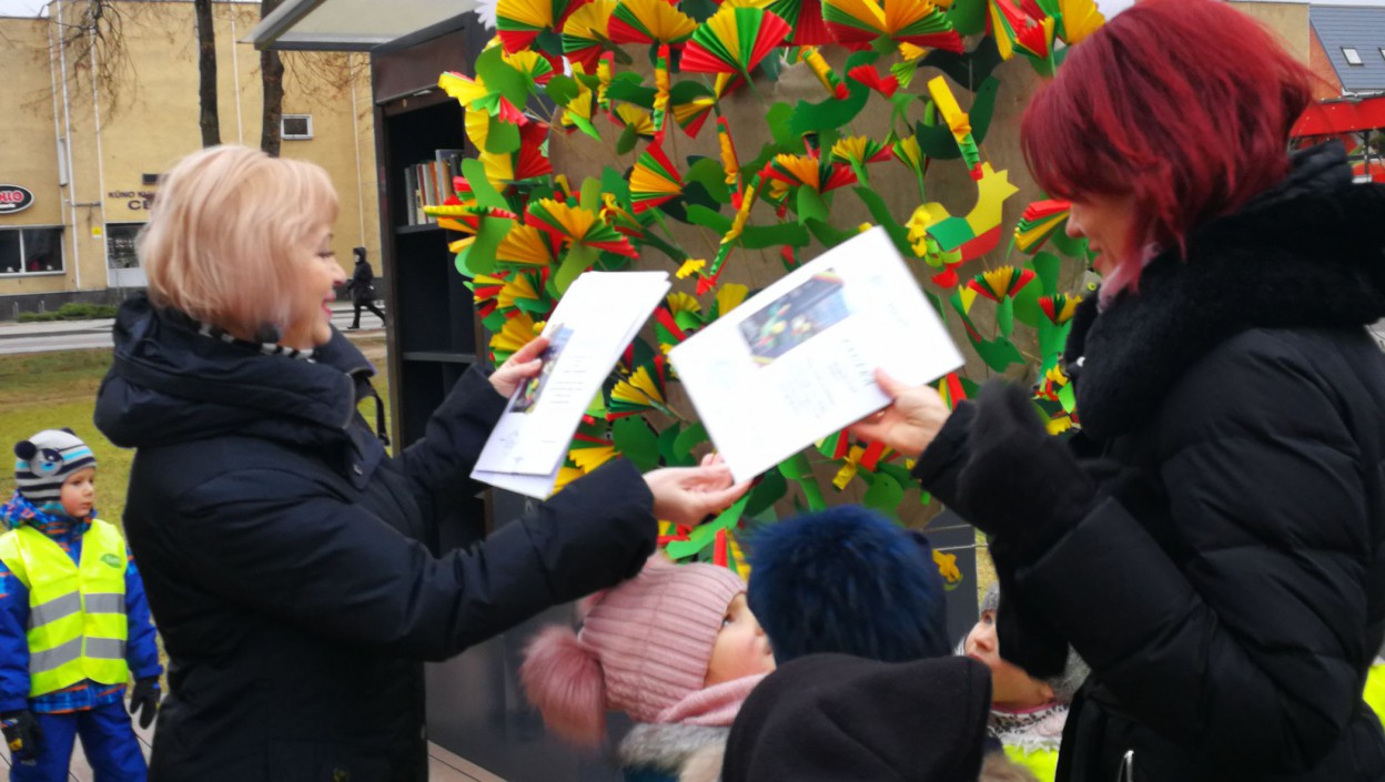 „Šiandien Knygų terasoje šurmuliuoja vaikai. Mes sausio 2 dieną pakvietėme Jonavos bendruomenės sudalyvauti šioje akcijoje, gaminant Lietuvos vėliavos spalvomis papuoštus paukščius. Atsiliepė net šešios organizacijos: keturi darželiai – „Žilvitis“, „Saulutė“, „Pakalnutė“, „Lakštingalėlė“, Jonavos Vaikų globos namai ir Jonavos rajono Barupės mokykla. Šioje akcijoje dalyvavo 150 vaikų, jie, padedami savo auklėtojų, pagamino 400 paukščių, kurie ir nutūpė į mūsų širdį. Jei širdyje plevena Laisvės paukščiai – Lietuva gyva, toks buvo mūsų tikslas “, - sakė Jonavos Viešosios bibliotekos direktorė Skirmutė Gajauskaitė.