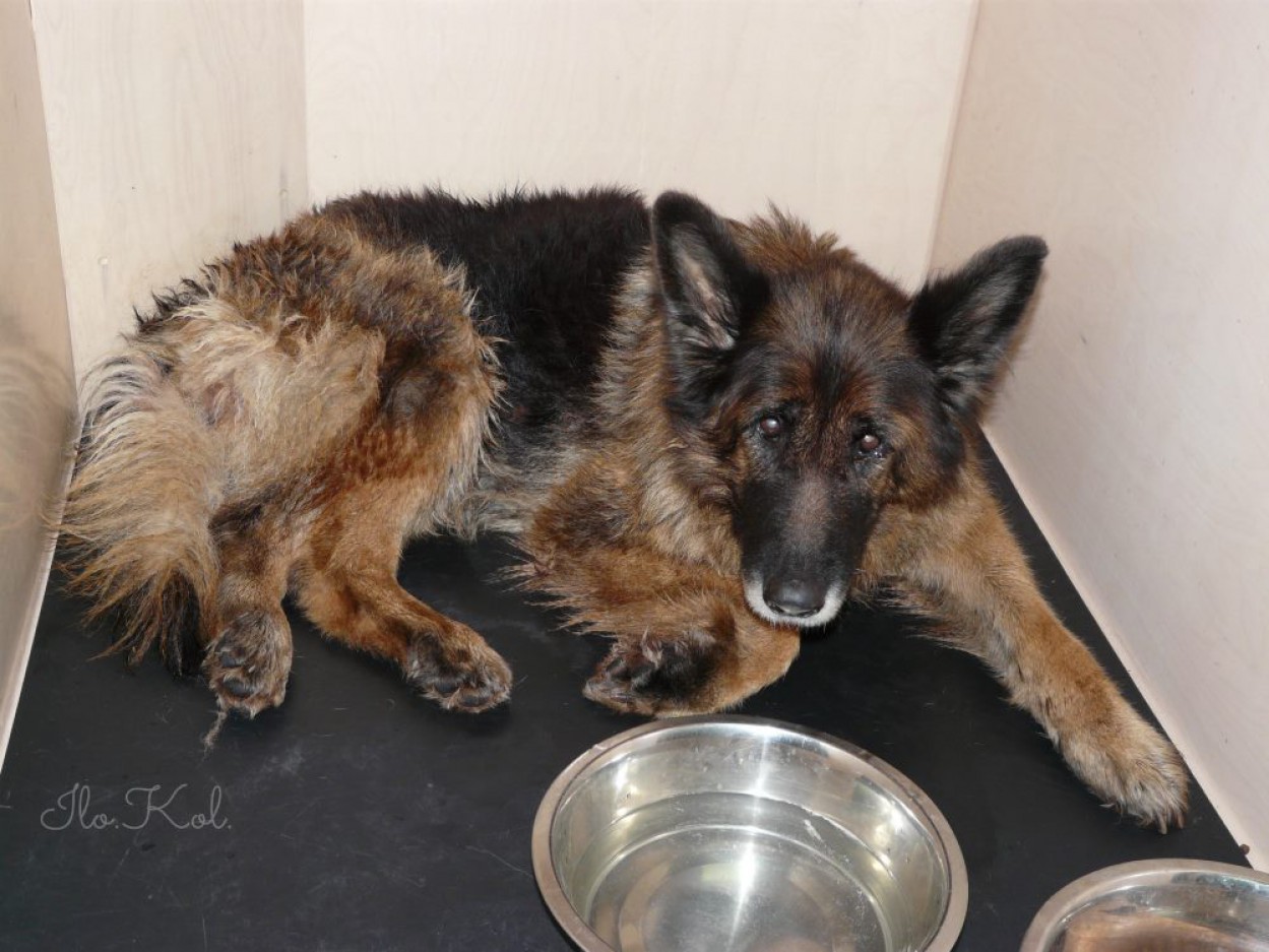 Savaitgalį į Jonavos veterinarijos gydyklą „VetPet“ atvežtas greičiausiai eismo įvykio metu sužeistas vilkšunis.