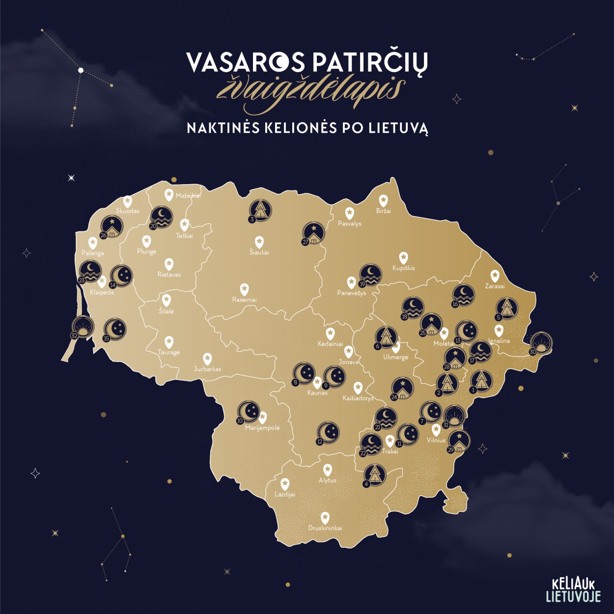 Kai trumpos vasaros kelionėms nebeužtenka, vienintelis būdas ja pasimėgauti daugiau – keliauti ir naktimis. Artėjant trumpiausiai nakčiai metuose, nacionalinė turizmo skatinimo agentūra „Keliauk Lietuvoje“ pristato Žvaigždėlapį, kuriame – daugiau nei 30 patirčių visoje šalyje tamsiuoju paros metu: nuo naktinių safarių upėmis, ežerais iki žygių miškais su deglais ar net asmeninio astronomo į namus.