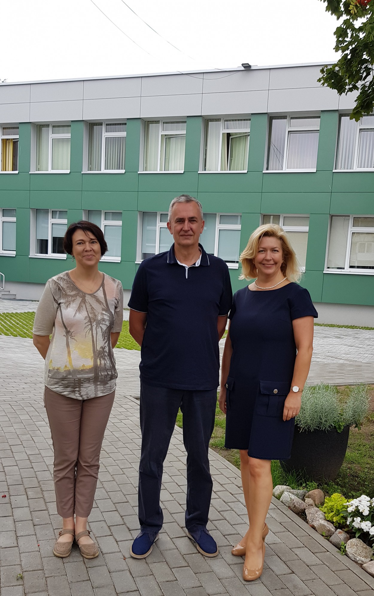 Prie renovuoto „Pakalnutės“ lopšelio-darželio. Iš kairės į dešinę: jo direktorė Zita Gudonavičienė, Vytautas Žebrauskas, Vijolė Šadauskienė