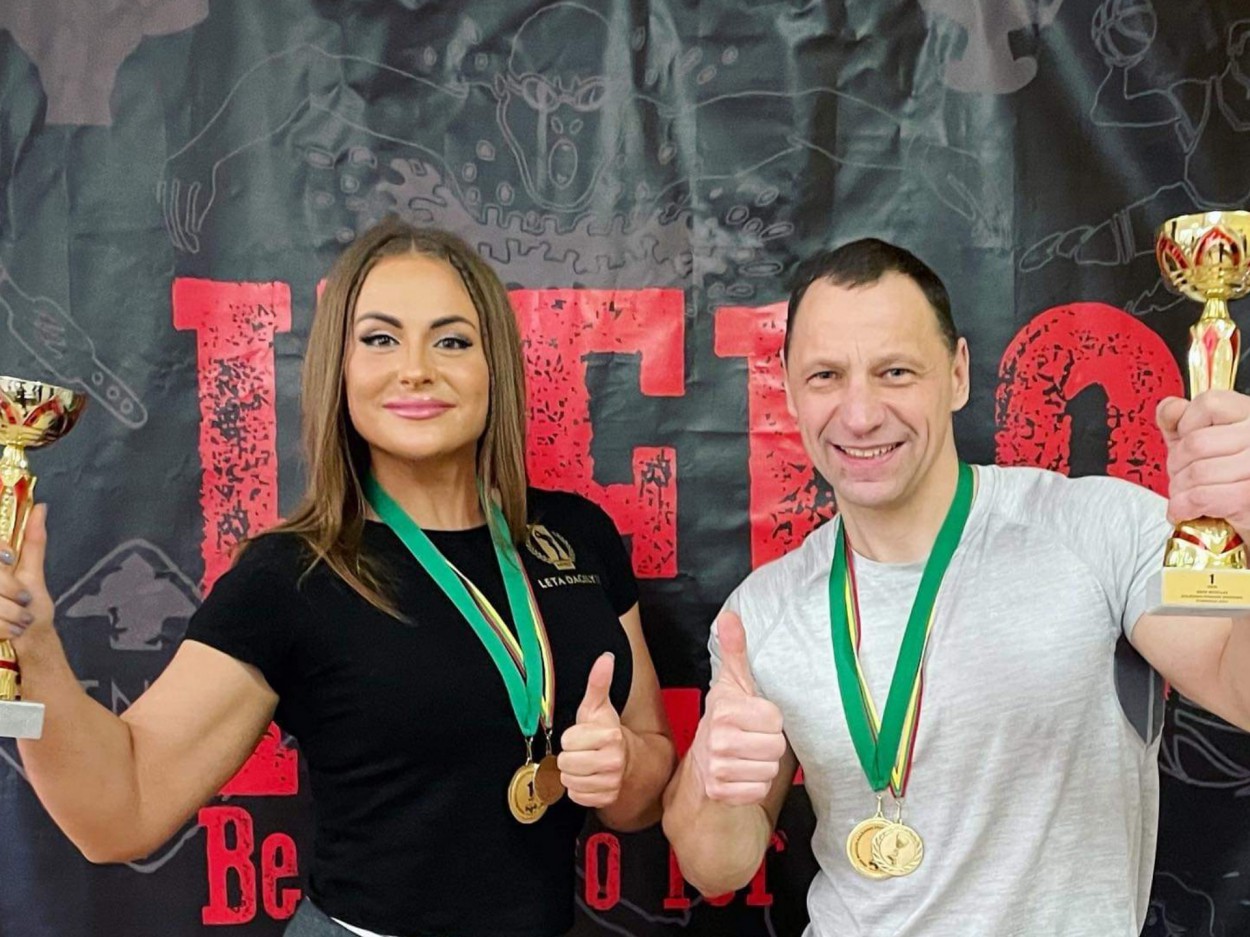 ,,Iron Muscles" organizuotose varžybose tądien dalyvavo ir du jonaviečiai - Leta Dagilytė bei Vitalijus Chlomko. Abu sportininkai parsivežė aukso spalvos medalius.