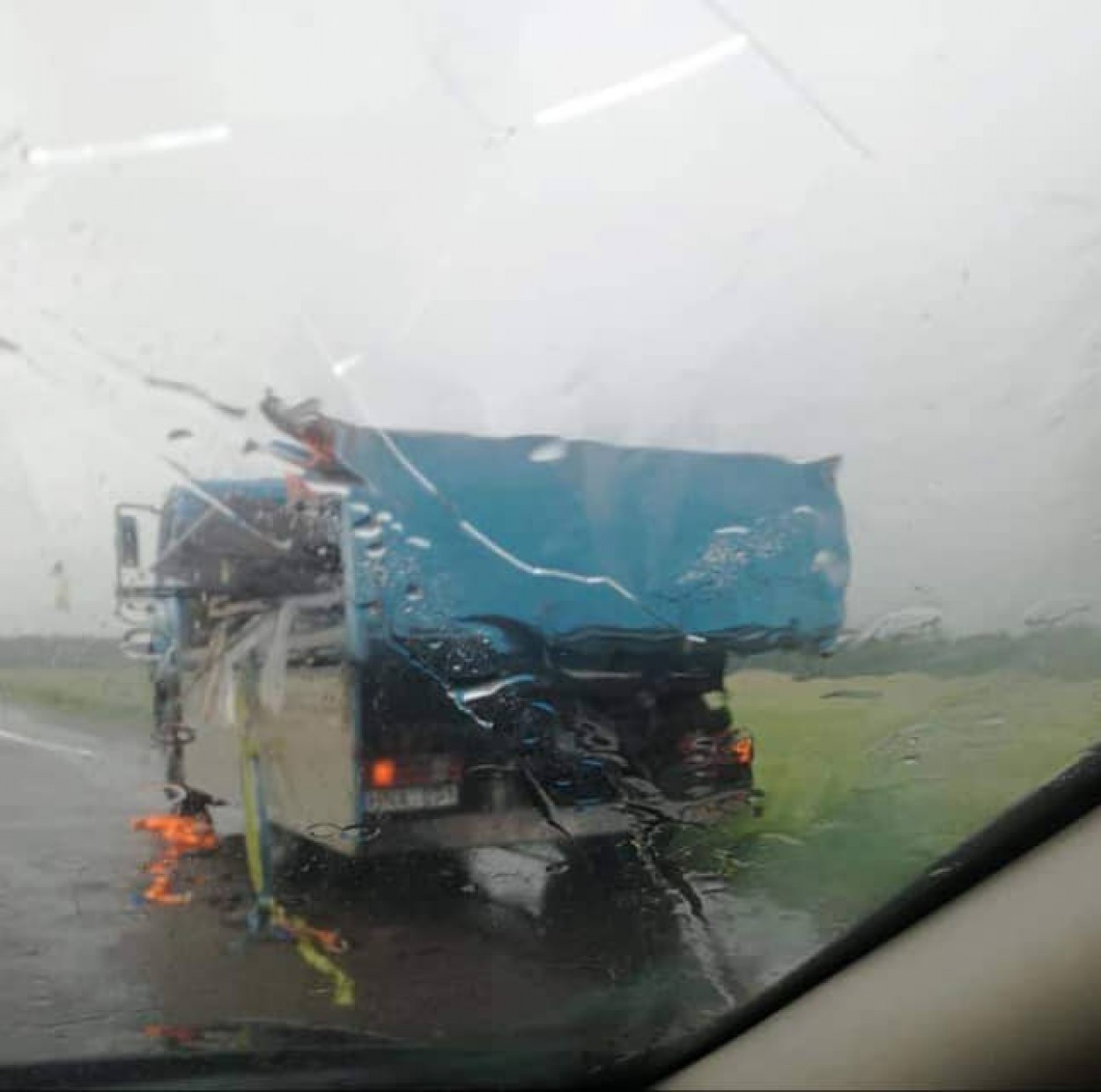 Posūkyje, trūkus plokščių sutvirtinimo diržams, šios, krisdamos, kliudė važiavusį automobilį „Audi 100 Avant“. Nukentėjo lengvąjį automobilį vairavęs 63 metų vyras ir 60 metų keleivė.