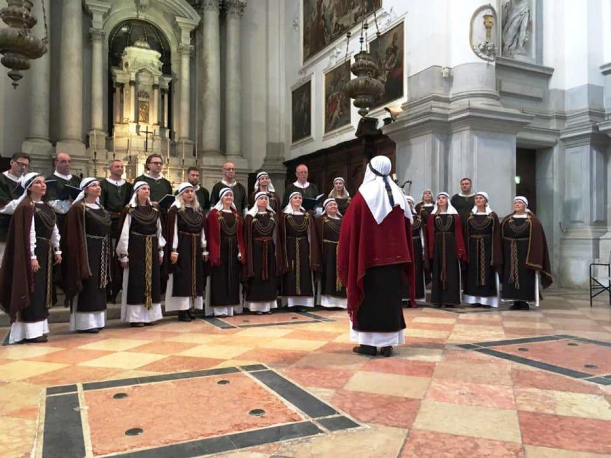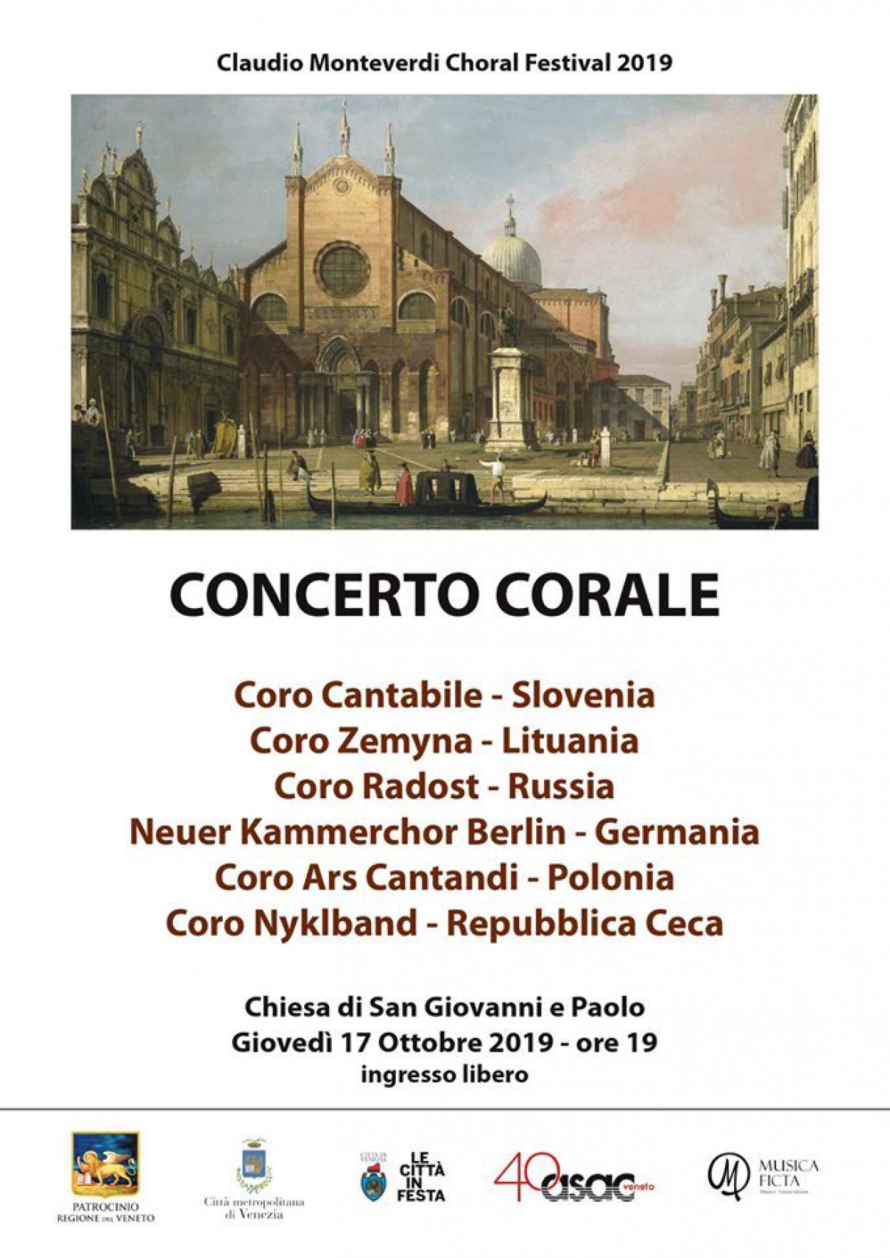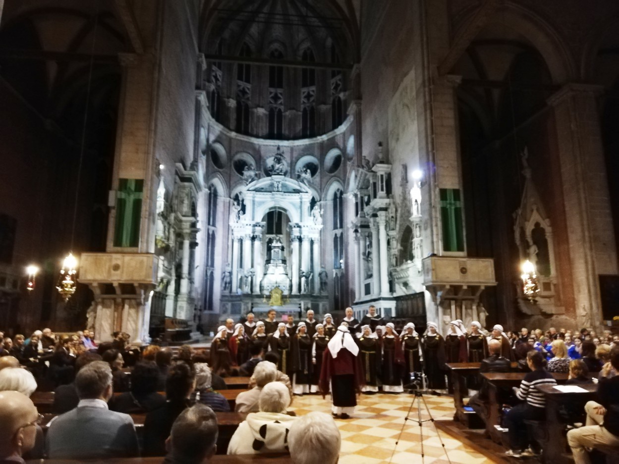 Iš viso Venecijoje koncertavome tris kartus ir visada su skirtinga programa ir skirtingose bažnyčiose. Į kai kurias bažnyčias įėjimas yra mokamas, bet konkurso dalyviams mokėti nereikėjo. Fotografuoti, filmuoti irgi ne visur leido, bet išsiprašėm, tai leido, tik be blykstės. Prisistatymo programa (San Giovanni e Paolo bažnyčioje), E kategorija sakralinė muzika (San Stae bažnyčioje). B kategorijoje (San Pietro di Castello) nuskambėjo „Žemynos“ atliekamas privalomas Claudio Monteverdi kūrinys. Mes pasirinkome „T‘amo, mia vita“ (solistė Ainė Kvedaravičienė). Koncertuose skambėjo kompozitorių: Algirdo Martinaičio, Nijolės Sinkevičiūtės, Vaclovo Augustino, Vytauto Miškinio, Leonido Abario, Juliaus Štarkos, Algimanto Bražinsko, Thomas Luis da Victoria, Maurice Durufle kūriniai.
