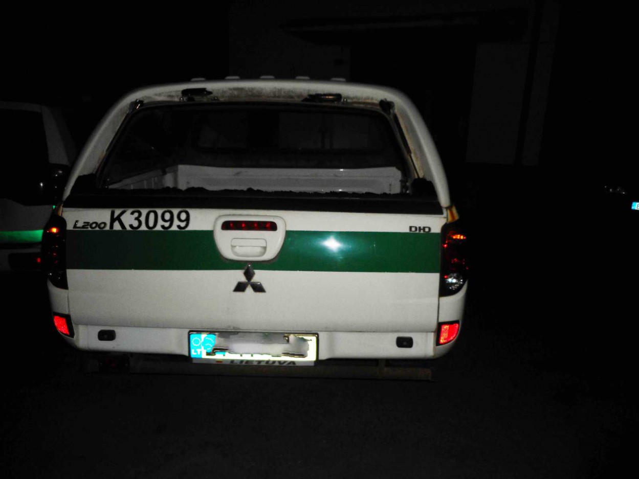 Patys pareigūnai buvo atokiau nuo automobilio, šventės vietoje. Suveikus signalizacijai ir priėję prie tarnybinio automobilio „Mitsubichi L200" jie rado iškultą galinio lango stiklą.