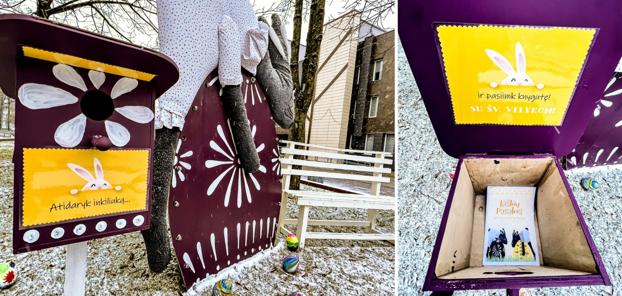 - Pasiimti namo nemokamą užduotėlių ir lietuvių tautosakos knygelę „Kiškių pasakos“;