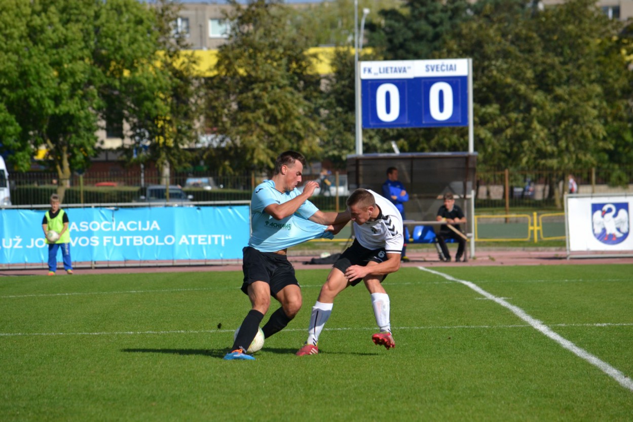 Po pertraukos jau tokio pranašumo „Lietavos“ futbolininkai neturėjo, nes ir varžovai iš Šilutės ėmė grasinti Lauryno Vertelio ginamiems vartams. Į pabaigą artėjant mačui progų vėl pagausėjo, o po varžovo pašalinimo iš aikštelės, jonaviečiai tiesiog užgulė svečių vartus. Kamuolys niekaip nerado spragų gynyboje, o ir varžovų vartininkas patikimai saugojo nuo įvarčio.