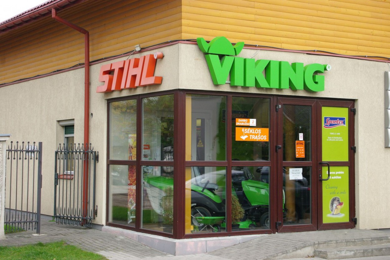 Išties Jonavoje, Prezidento gatvėje, visai netoli „Maxima“ prekybos centro įsikūrusioje „STIHL“ „VIKING“ parduotuvėje, kurioje prekiaujama motoriniais, elektriniais pjūklais, žoliapjovėmis, įvairiais statybos įrankiais taip pat veikia įrankių nuomos punktas, galima įsigyti daugelyje pasaulio šalių žinomos firmos „iittala“ prekių, skirtų virtuvei, svetainei, interjerui.