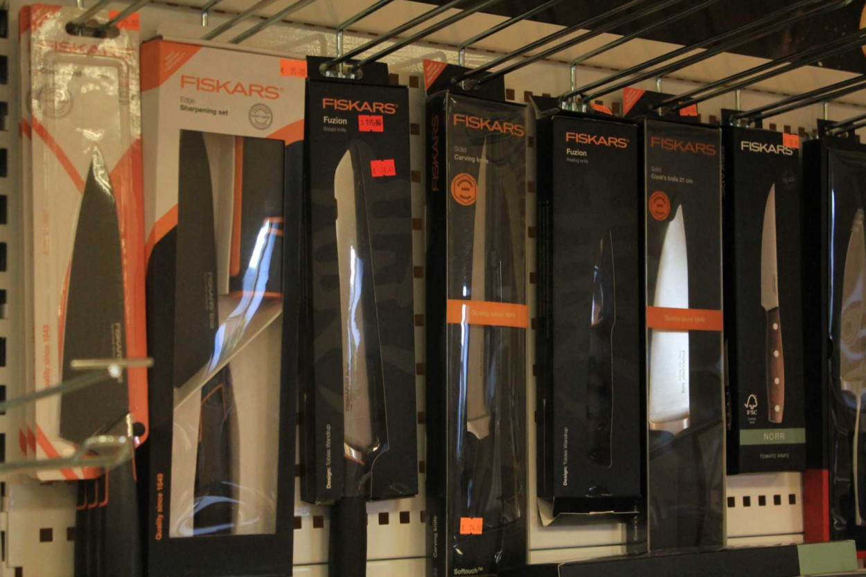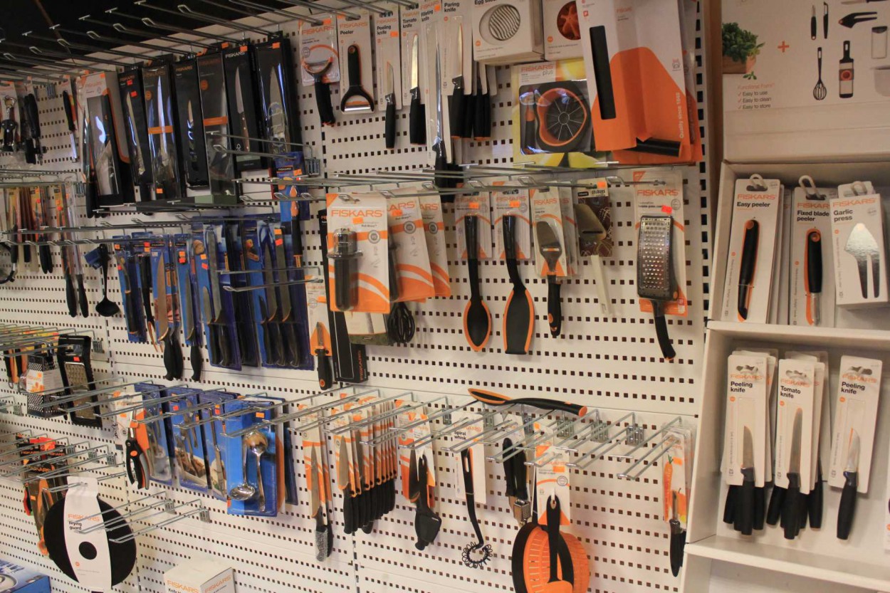 Parduotuvės vadovė Alma Mirinauskienė sako, jog net ir prabangioms prekėms taikomos akcijos, parduotuvėje - platus “Fiskars” įrankių pasirinkimas, taip pat norimas prekes, jei jų parduotuvėje nėra, galima užsisakyti.