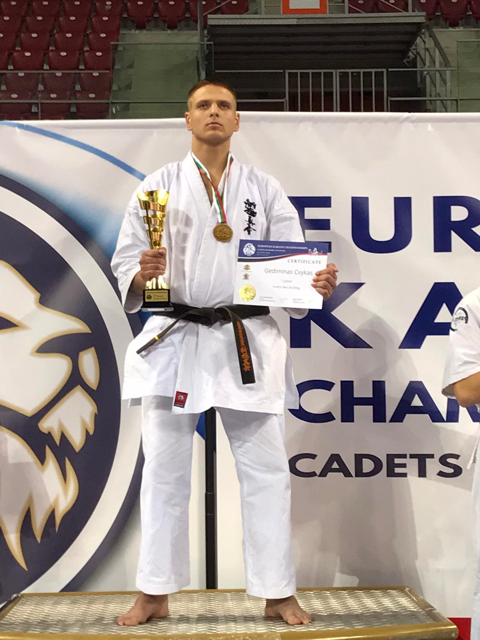 Kitą dieną vyko U-18 ir U-20 sportininkų varžybos. Čia ,,Kumite" klubo sportininkas Gediminas Cvykas iškovojo auksą ir tapo Europos čempionu svorio kategorijoje iki 85 kilogramų. G. Cvykas finalą laimėjo nokautu.