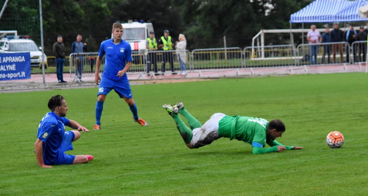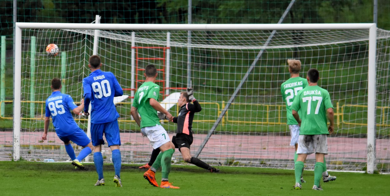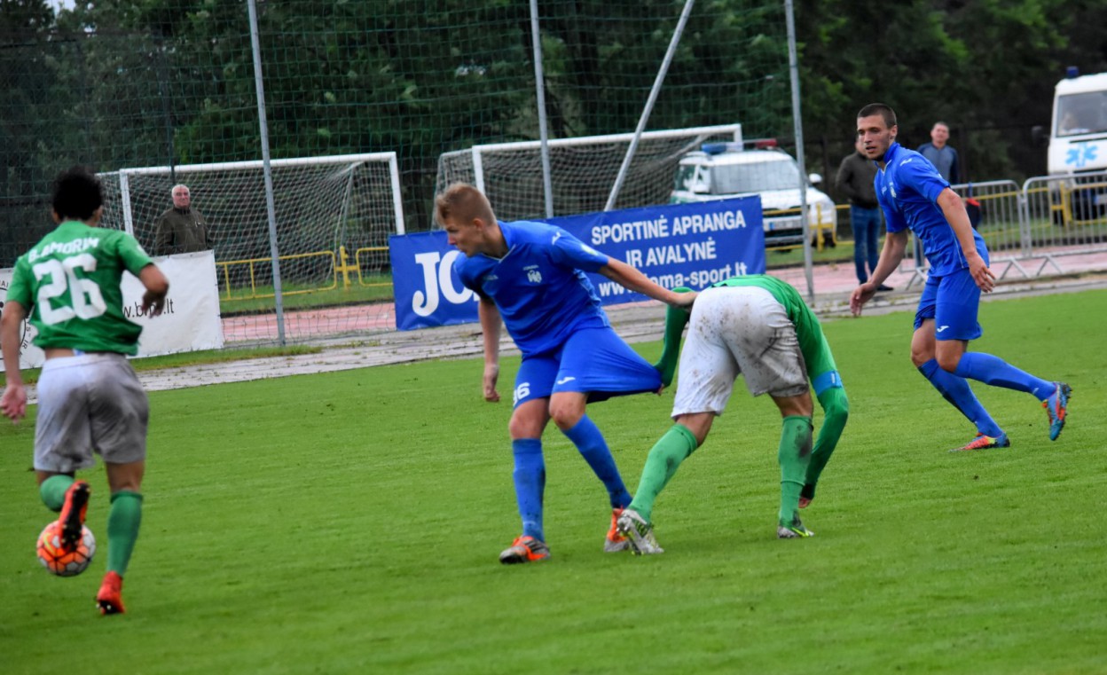 Mačo tarp „Lietavos“ ir „Kauno Žalgirio“ pradžioje ekipos apsikeitė atakomis, tačiau įvarčių pasiekti nepavyko. Visgi, vėl į savo sėkmingą žaidimą mušti įvarčius mėginantis grįžti kapitonas Laurynas Stonkus vėl sugebėjo nudžiuginti tiksliu smūgiu. 33 min. varžovų baudos aikštelėje Dominykas Galkevičius atliko tikslų perdavimą L. Stonkui, kurio smūgiuotas kamuolys atsidūrė varžovų vartų tinkle. Tačiau pirmajame kėlinyje šios persvaros jonaviečiams išsaugoti nepavyko ir kaip kalbama futbolo terminologija, įvartis buvo gautas į rūbinę. Paskutinę minutę išlyginamąjį įvartį pasiekė Andrius Velička.