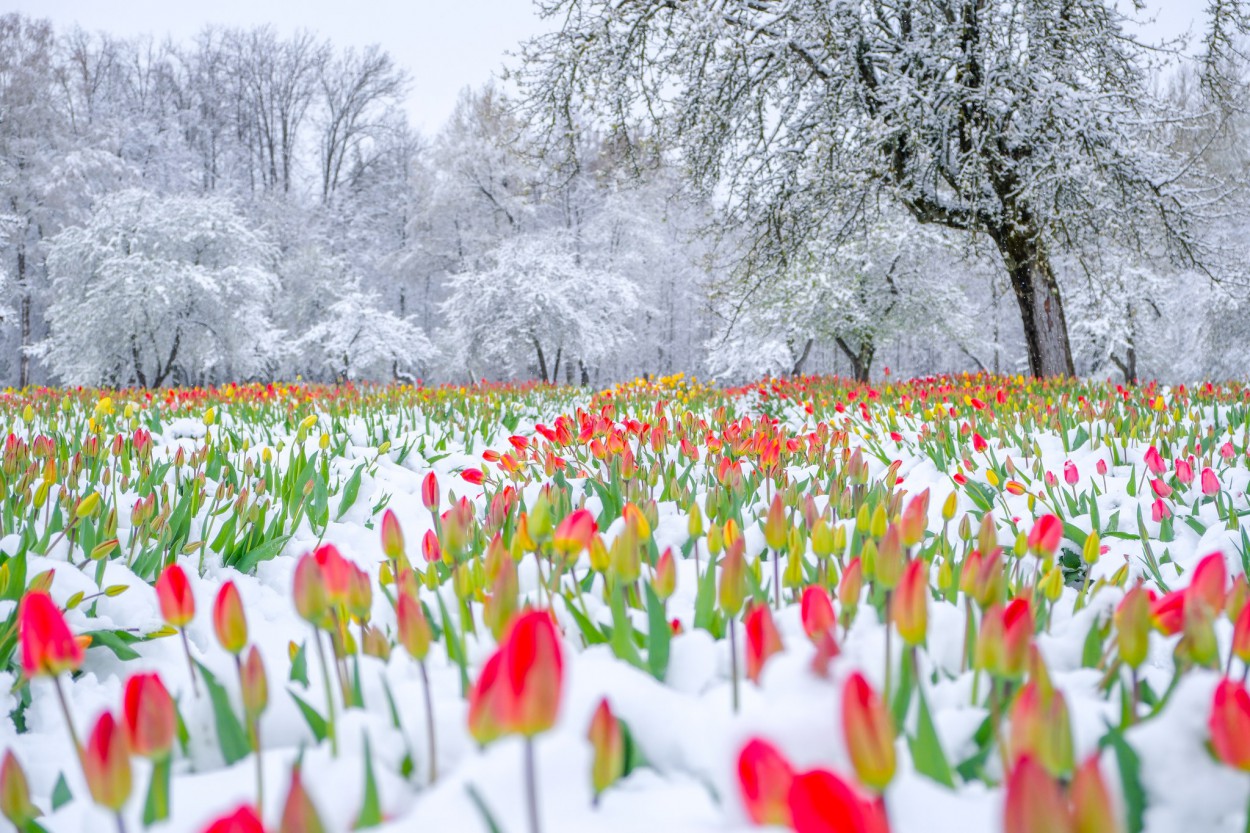 Balandžio 23 dieną Daugyvenės kultūros istorijos muziejaus-draustinio Burbiškio dvaro margaspalvį gėlyną netikėtai užklojo stori balto sniego patalai, bet staiga atvėsę orai ištvermingoms tulpėms nepakenkė. Po dienos sniegas jau buvo nutirpęs, o tulpių žiedai ir toliau po truputį skleidžiasi.