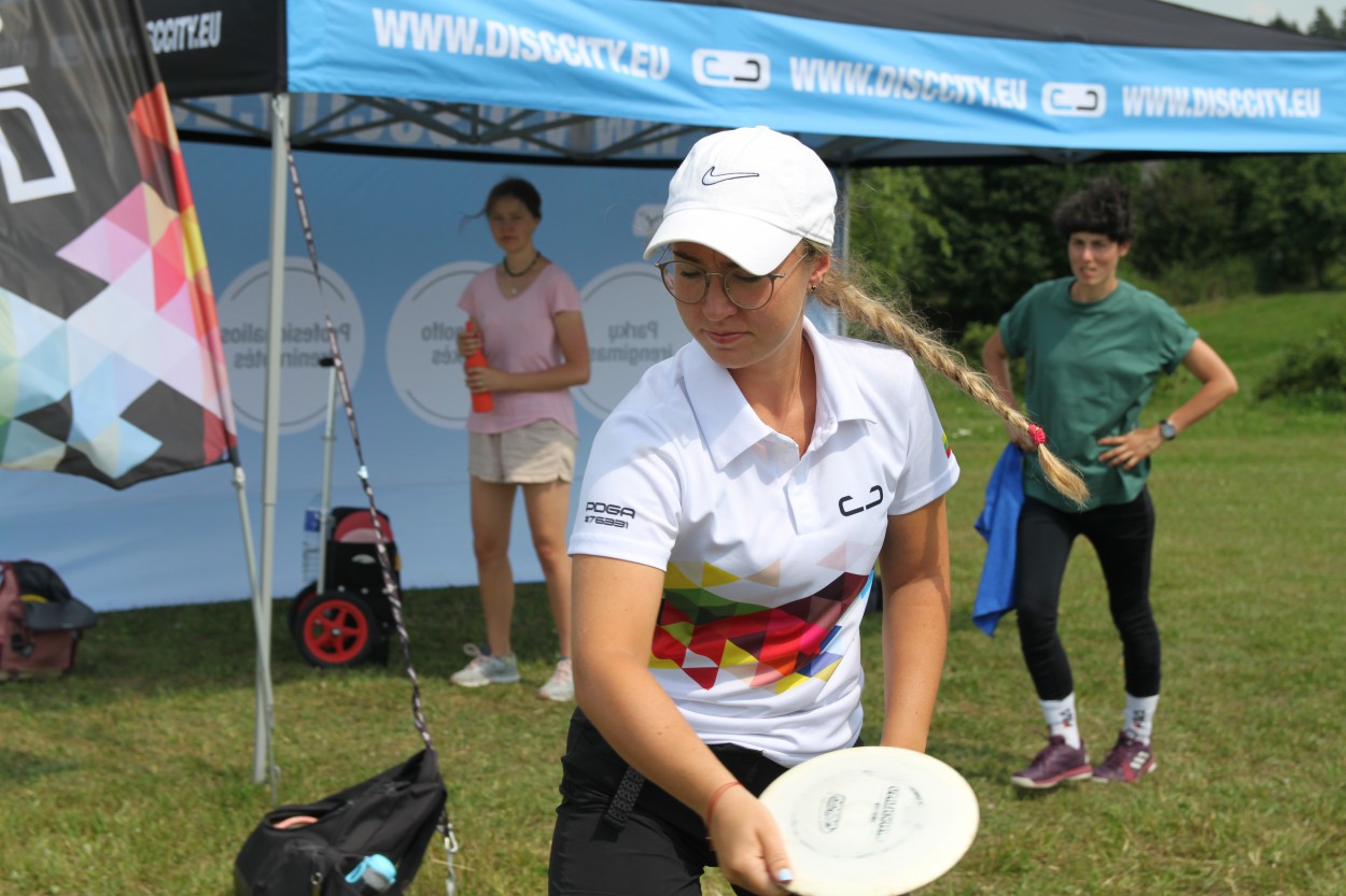Moterų divizione aktyvi kova taip pat vyksta tarp dviejų sezono lyderių – Miretos Jurgelevičiūtės (DiscCity komanda, Jonavos raj.) ir klaipėdietės Oksanos Žukauskienės. Per pirmus keturis etapus jos abi buvo pasiekusios po dvi pergales. Šį kartą vėl savo pranašumą įrodė daugkartinė Lietuvos čempionė ir taurės laimėtoja M. Jurgelevičiūtė. O. Žukauskienė nuo jos atsilikusi 6 taškais užėmė antrą vietą. Trečiąją iškovojo vilnietė Svetlana Kobec, tik paskutiniame krepšyje vienu tašku aplenkusi parko „šeimininkę“ Ievą Navickaitę (Zarasų raj.). Dvi sezono lyderės pratęs savo kovą dėl moterų taurės paskutiniuose dviejuose etapuose. Kol kas pirmaujančiai M. Jurgelevičiūtei užtenka pergalės viename iš jų, kad užsitikrinti pirmąją vietą bendroje įskaitoje.