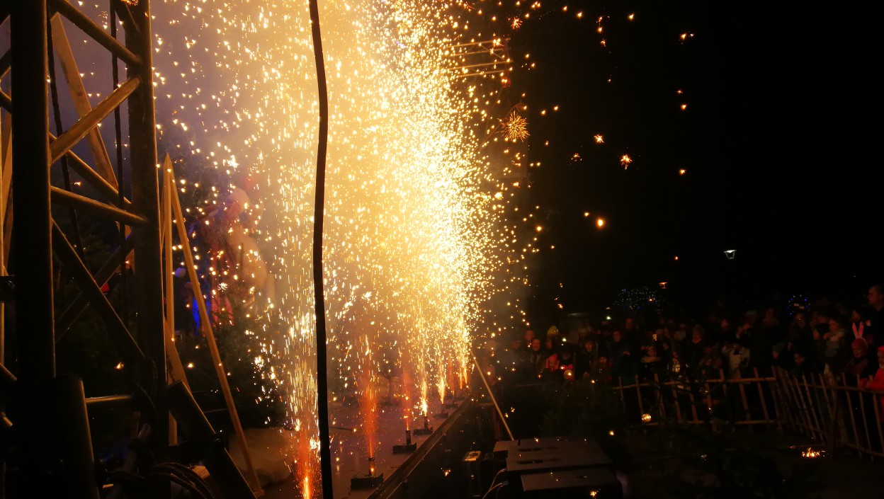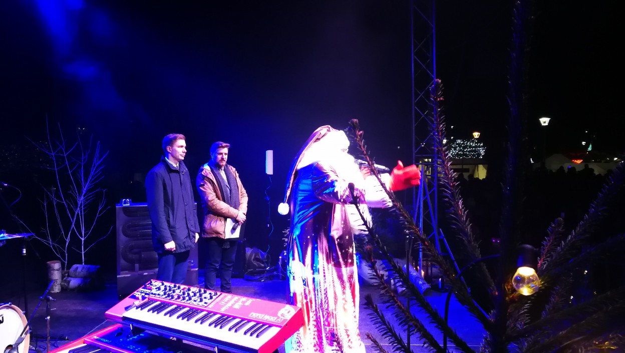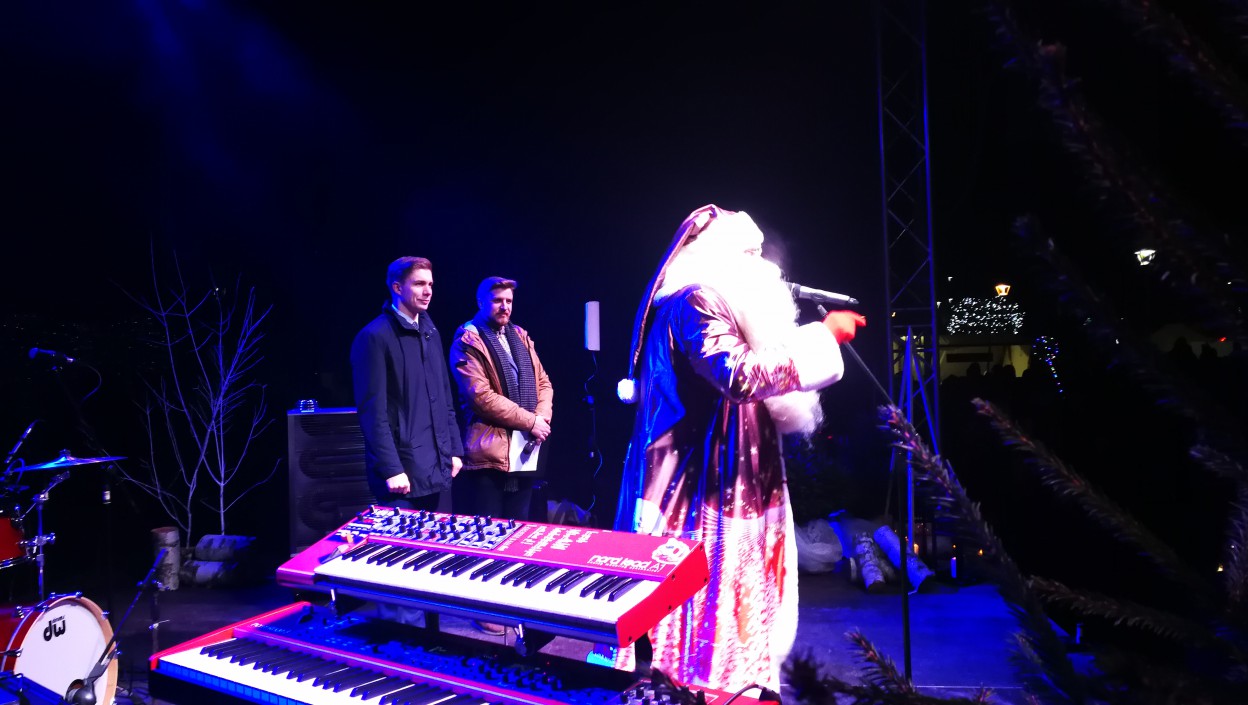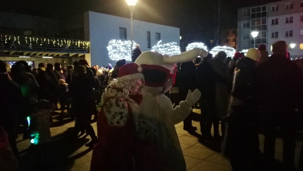 Jonavos eglę įžiebti padėjo Kalėdų Senelis, kuris iki scenos atvyko Kalėdamobiliu. Tiesa – pirmas bandymas nepavyko, įsižiebė tik fejerverkų fontanai, tačiau tai – tik šuo dalis. Antruoju bandymu Sąjūdžio aikštė nušvito įsižiebus Kalėdų eglei bei šventiniams fejerverkams.