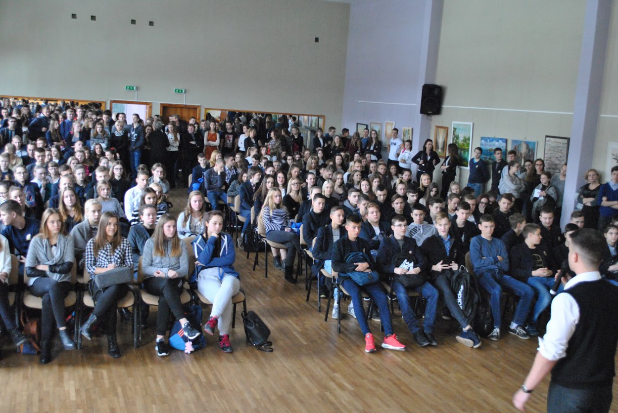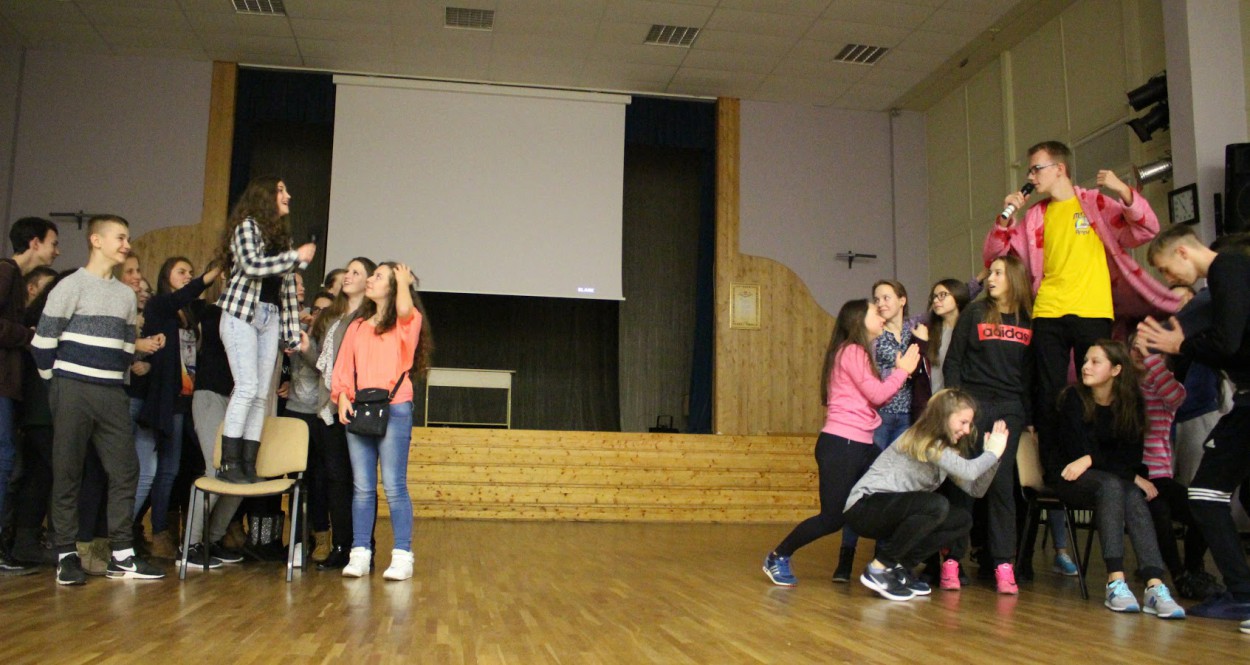 Ypač buvo laukta neeilinio susitikimo. Naktį į mokyklą atvyko Lietuvos teatro ir televizijos aktorius, humoristas Justinu Jankevičiumi. Renginį vainikavo smagi diskoteka.