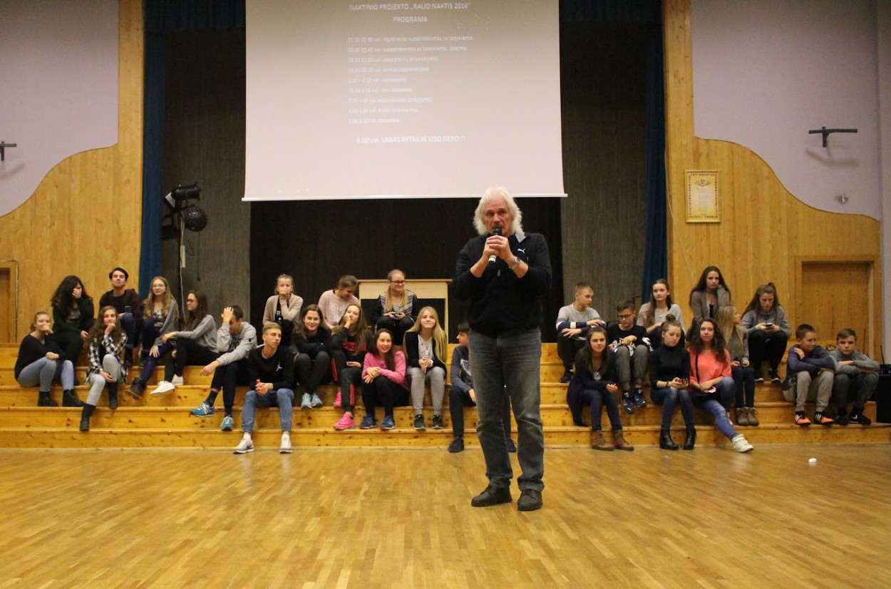 Raliečiai bei svečiai iš Justino Vareikio, Raimundo Samulevičiaus progimnazijų, ,,Neries“, ,,Lietavos“ pagrindinių mokyklų rinkosi mūsų gimnazijoje, kad visą naktį praleistų įdomiai ir naudingai.